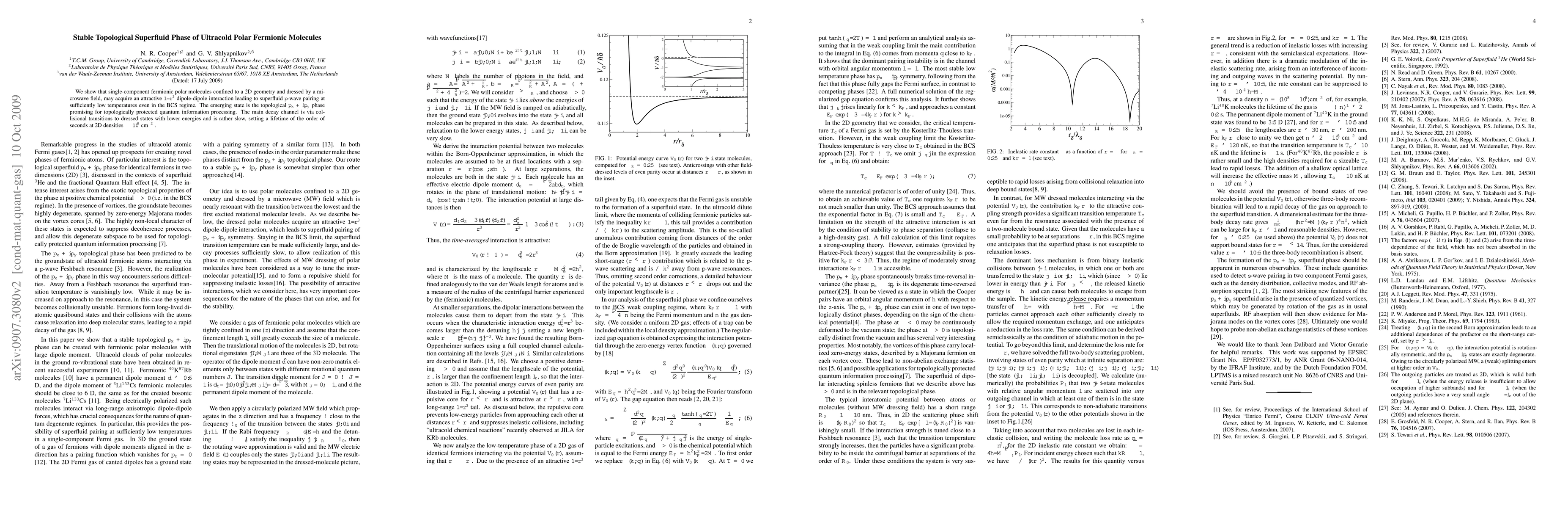 This paper demonstrates the emergence of a stable topological superfluid phase in 2D ultracold polar fermionic molecules, driven by an attractive $1/r^3$ dipole-dipole interaction. The resulting $p_x+ip_y$ phase offers potential for topologically protected quantum information processing with a long lifetime of seconds.
