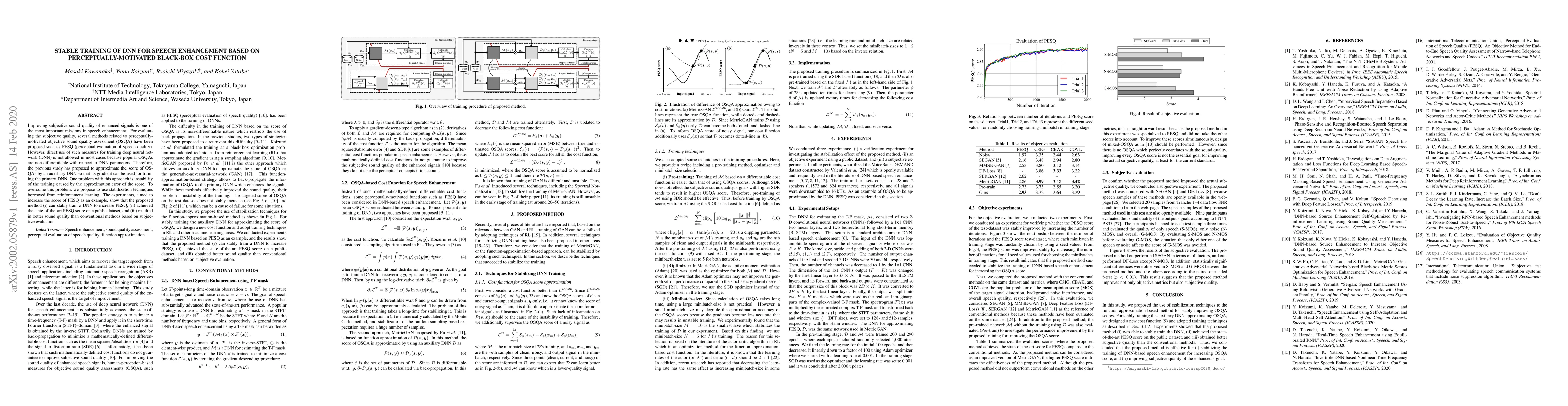 This paper proposes stable training techniques for deep neural networks (DNNs) used in speech enhancement, utilizing a perceptually-motivated black-box cost function. The method stabilizes training by employing reinforcement learning techniques to address approximation errors, achieving state-of-the-art PESQ scores and better subjective sound quality compared to conventional methods.