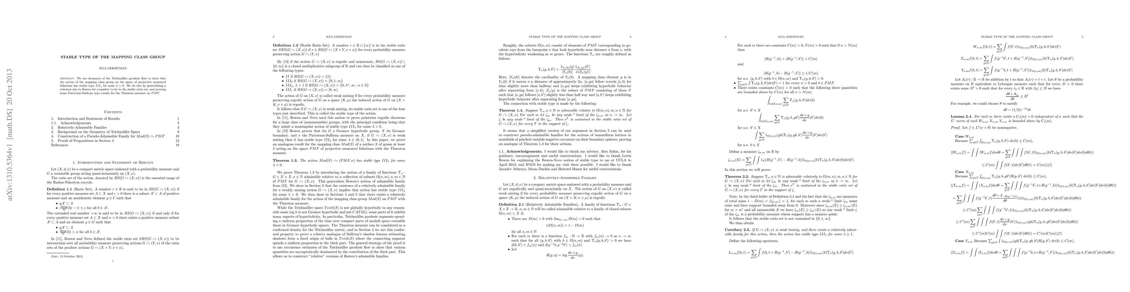 This research demonstrates that the mapping class group's dynamics on projective measured foliations exhibit stable type $III_{\lambda}$ using Teichmüller geodesic flow, by extending Bowen's criterion and establishing Patterson-Sullivan results for Thurston measure on PMF.