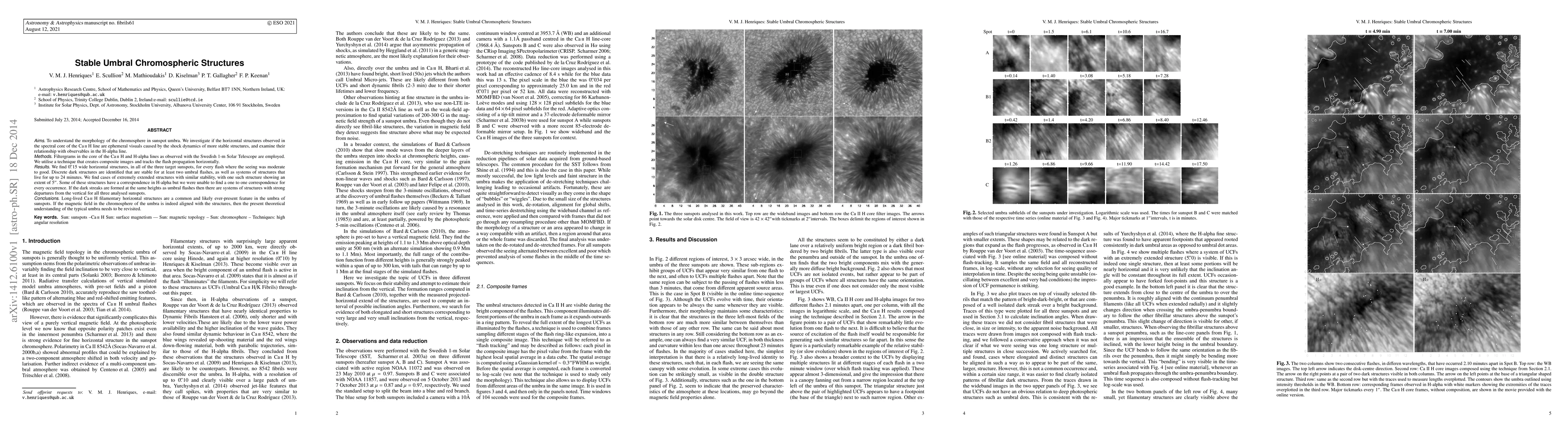 The study presents a detailed analysis of stable umbral chromospheric structures, identifying their morphology and persistence across multiple umbral flashes.