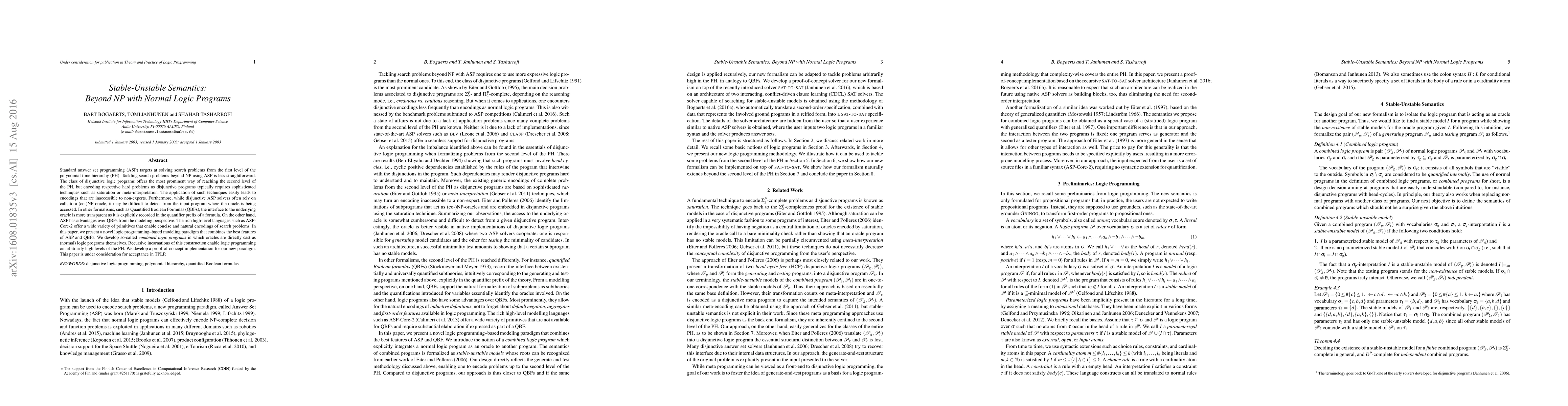 Standard answer set programming (ASP) targets at solving search problems from the first level of the polynomial time hierarchy (PH). Tackling search problems beyond NP using ASP is less straightforward. The class of disjunctive logic programs offers the most prominent way of reaching the second level of the PH, but encoding respective hard problems as disjunctive programs typically requires sophisticated techniques such as saturation or meta-interpretation. The application of such techniques easily leads to encodings that are inaccessible to non-experts. Furthermore, while disjunctive ASP solvers often rely on calls to a (co-)NP oracle, it may be difficult to detect from the input program where the oracle is being accessed. In other formalisms, such as Quantified Boolean Formulas (QBFs), the interface to the underlying oracle is more transparent as it is explicitly recorded in the quantifier prefix of a formula. On the other hand, ASP has advantages over QBFs from the modeling perspective. The rich high-level languages such as ASP-Core-2 offer a wide variety of primitives that enable concise and natural encodings of search problems. In this paper, we present a novel logic programming--based modeling paradigm that combines the best features of ASP and QBFs. We develop so-called combined logic programs in which oracles are directly cast as (normal) logic programs themselves. Recursive incarnations of this construction enable logic programming on arbitrarily high levels of the PH. We develop a proof-of-concept implementation for our new paradigm. This paper is under consideration for acceptance in TPLP.