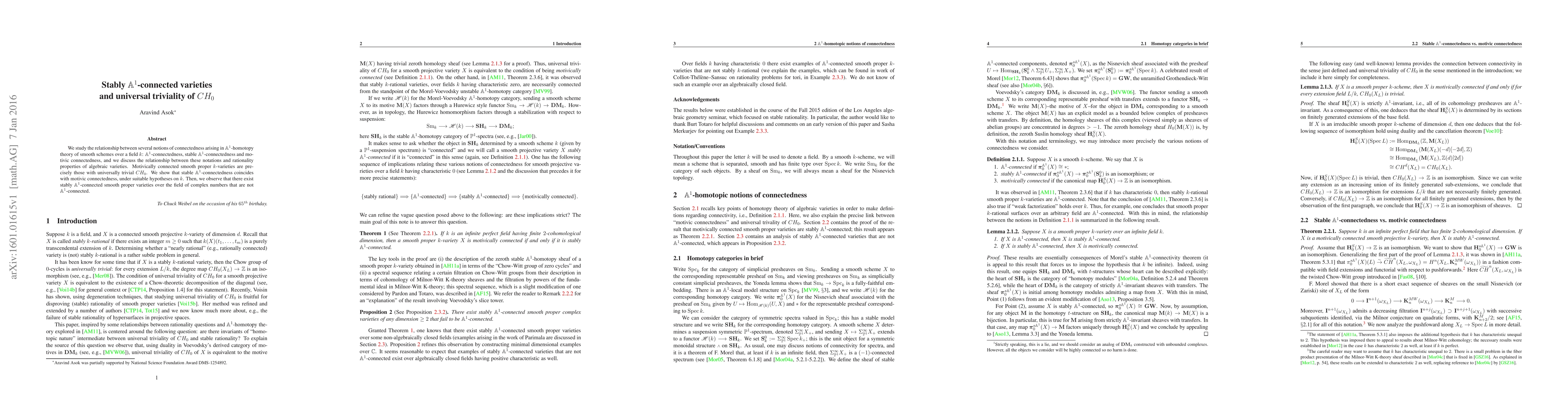 Summary: This paper investigates the connections between ${\mathbb A}^1$-connectedness, stable ${\mathbb A}^1$-connectedness, and motivic connectedness in the context of smooth schemes over a field, revealing that motivic connectedness implies universally trivial $CH_0$. It also demonstrates that stable ${\mathbb A}^1$-connectedness matches motivic connectedness under specific conditions, while noting the existence of ${\mathbb A}^1$-connected varieties over $\mathbb{C}$ that lack ${\mathbb A}^1$-connectedness.