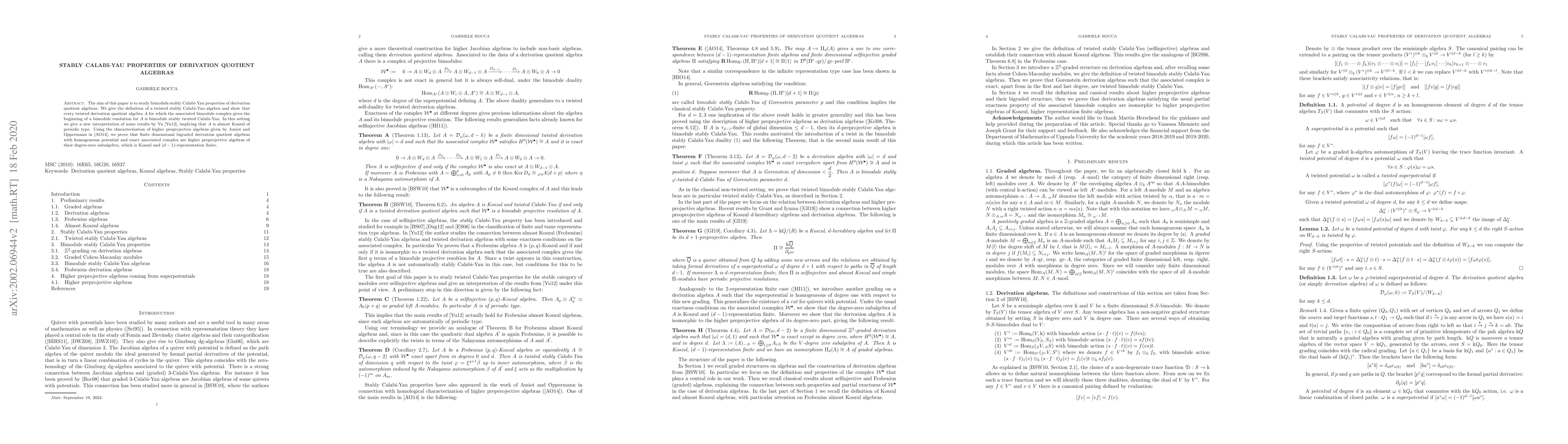 This paper explores the bimodule stably Calabi-Yau properties of derivation quotient algebras, introducing a definition for twisted stably Calabi-Yau algebras. It demonstrates that certain derivation quotient algebras with specific bimodule complexes are bimodule stably twisted Calabi-Yau, almost Koszul of periodic type, and shows their connection to higher preprojective algebras as characterized by Amiot and Oppermann.