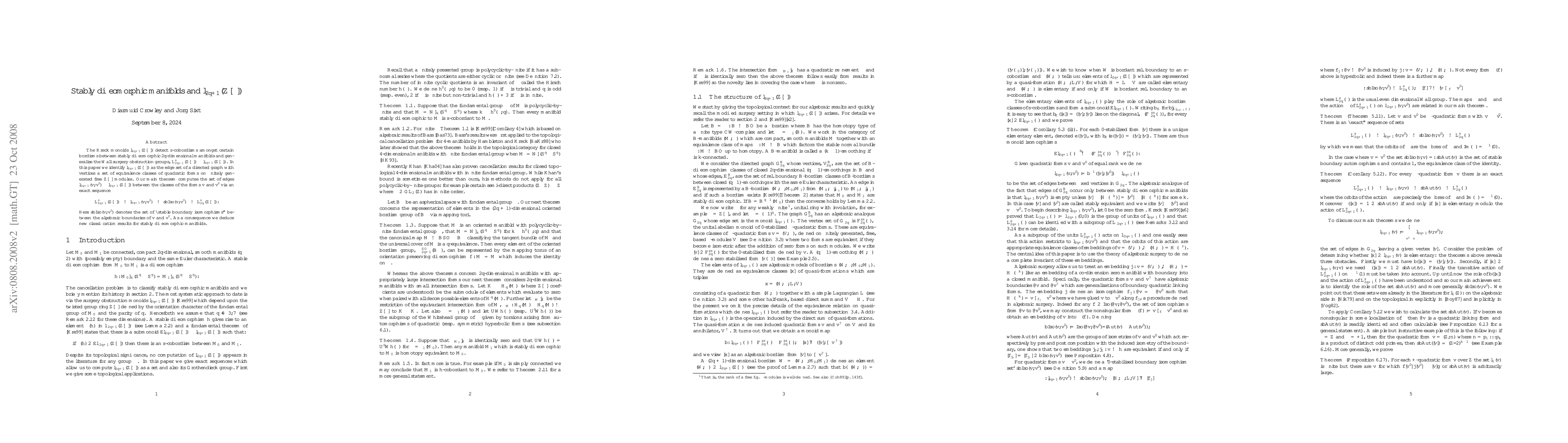 This paper explores the monoids \( l_{2q+1}(Z[\pi]) \) that detect s-cobordisms among stably diffeomorphic 2q-dimensional manifolds, generalizing Wall's surgery obstruction groups. The authors provide exact sequences to describe \( l_{2q+1}(Z[\pi]) \) and compute its Grothendieck group, leading to cancellation results for such manifolds with polycyclic-by-finite fundamental groups.
