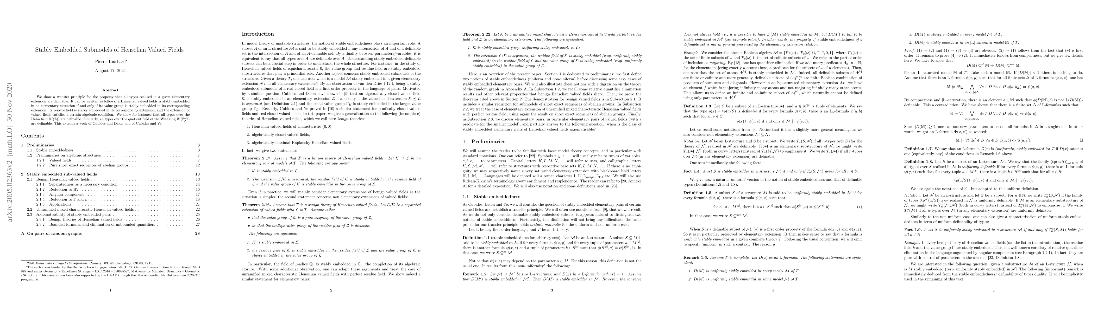 Researchers prove a transfer principle for Henselian valued fields, showing that types in an elementary extension are definable if certain conditions are met, with applications to specific fields like the Hahn field and Witt ring.