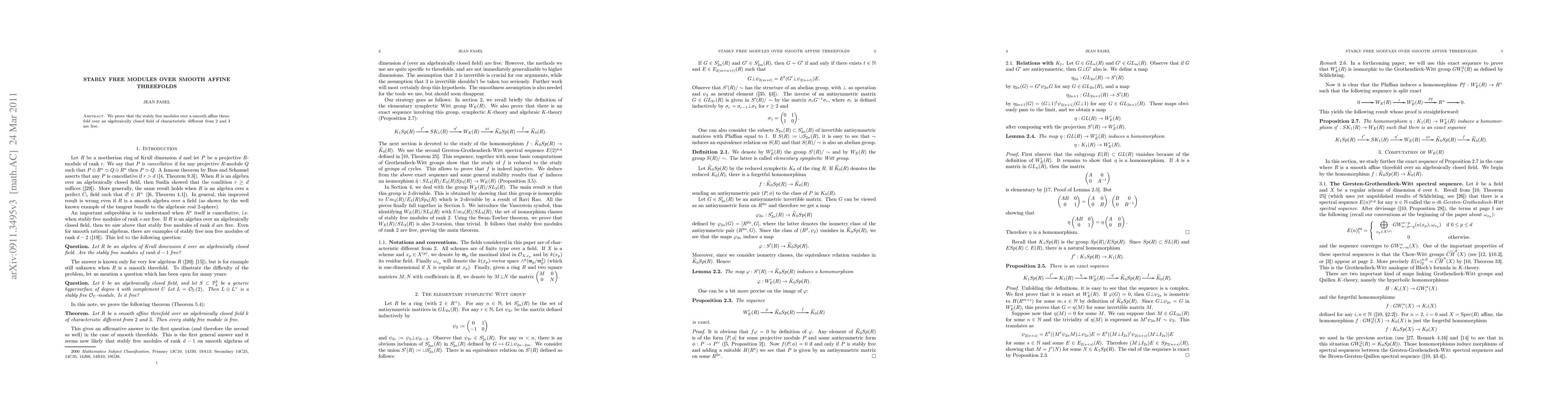 Summary: This paper demonstrates that stably free modules over smooth affine threefolds in an algebraically closed field of characteristic not equal to 2 are actually free modules. The result provides insight into the structure of these modules in algebraic geometry.