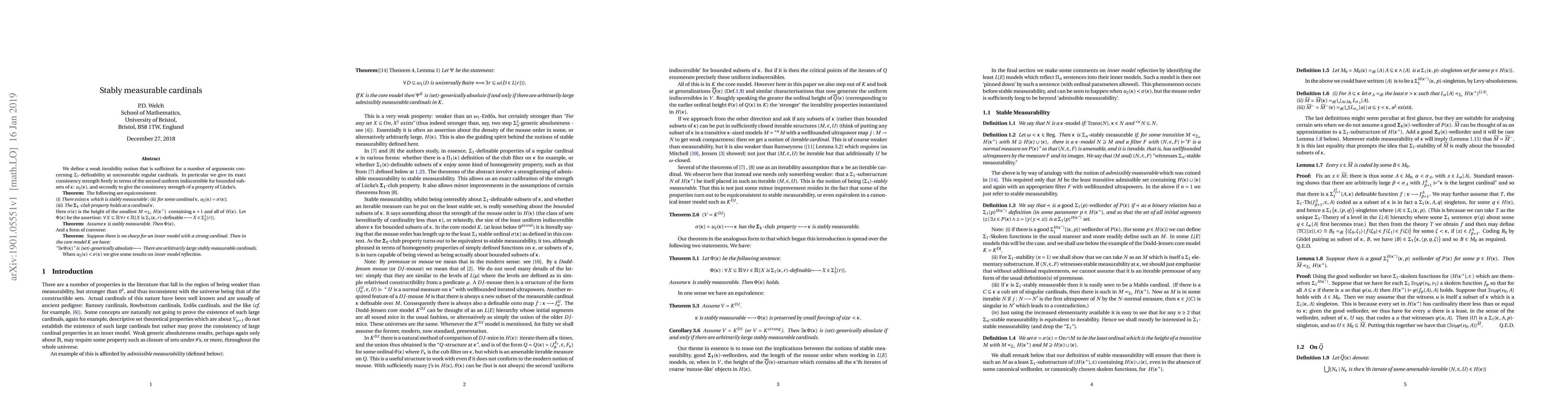 We define a weak iterability notion that is sufficient for a number of arguments concerning $\Sigma_1$-definability at uncountable regular cardinals. In particular we give its exact consistency strength firstly in terms of the second uniform indiscernible for bounded subsets of $\kappa$: $u_2(\kappa)$, and secondly to give the consistency strength of a property of L\"ucke's. Theorem: The following are equiconsistent: (i) There exists $\kappa$ which is stably measurable; (ii) for some cardinal $\kappa$, $u_2(\kappa)=\sigma(\kappa)$; (iii) The {\boldmath $\Sigma_1$}-club property holds at a cardinal $\kappa$. Here $\sigma(\kappa)$ is the height of the smallest $M \prec_{\Sigma_1} H(\kappa^+)$ containing $\kappa+1$ and all of $H(\kappa)$.