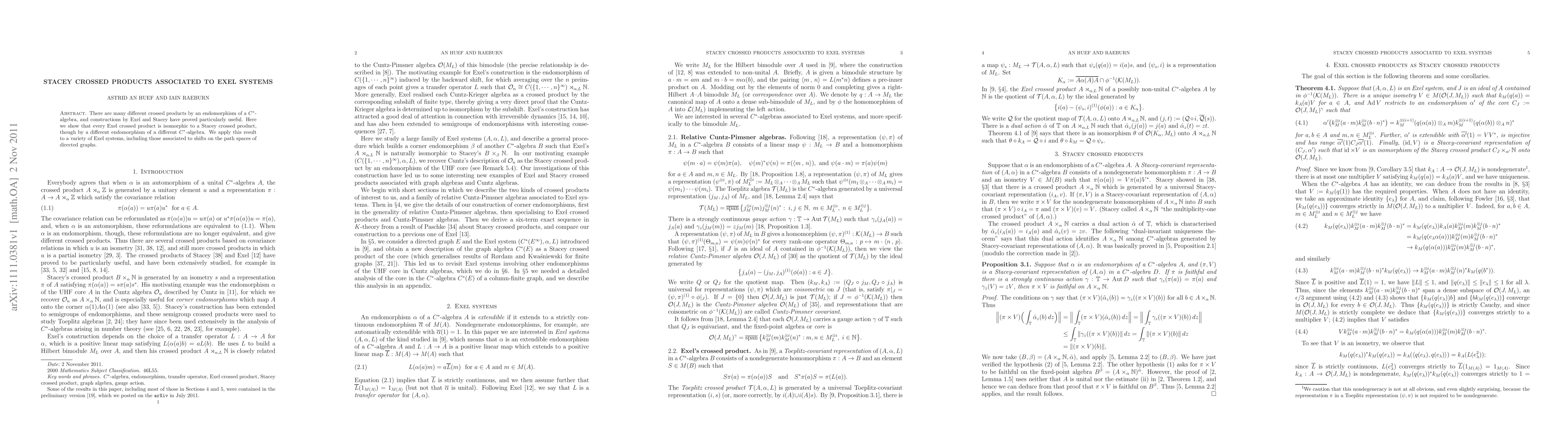 This paper demonstrates that every Exel crossed product is isomorphic to a Stacey crossed product, albeit through distinct endomorphisms and C*-algebras. The authors apply this result to various Exel systems, particularly those linked to shifts on directed graph path spaces.