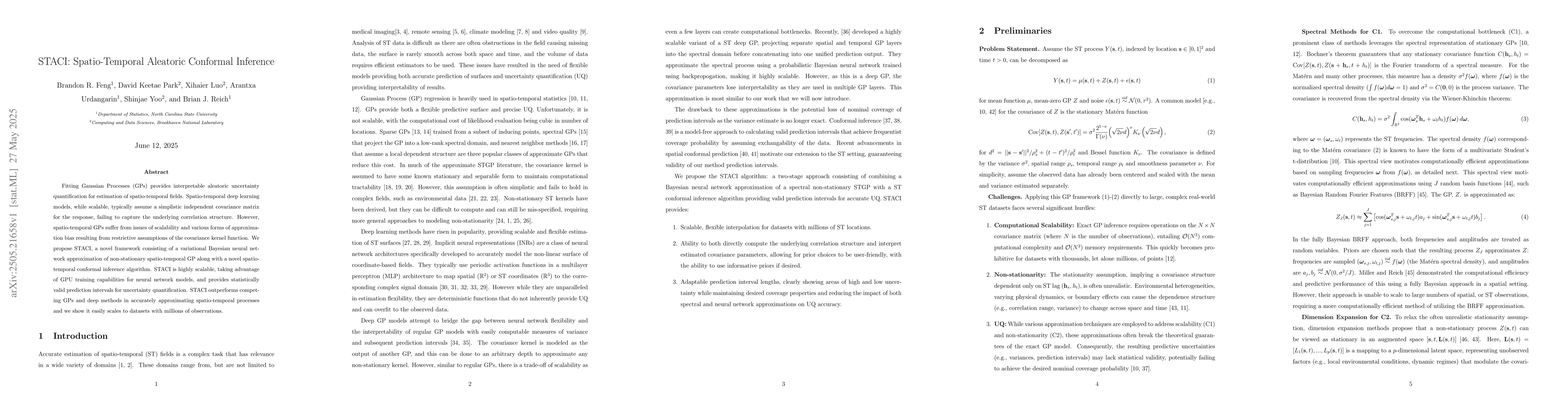The research proposes STACI, a framework combining a variational Bayesian neural network approximation of non-stationary spatio-temporal Gaussian Processes (GPs) with a novel spatio-temporal conformal inference algorithm.