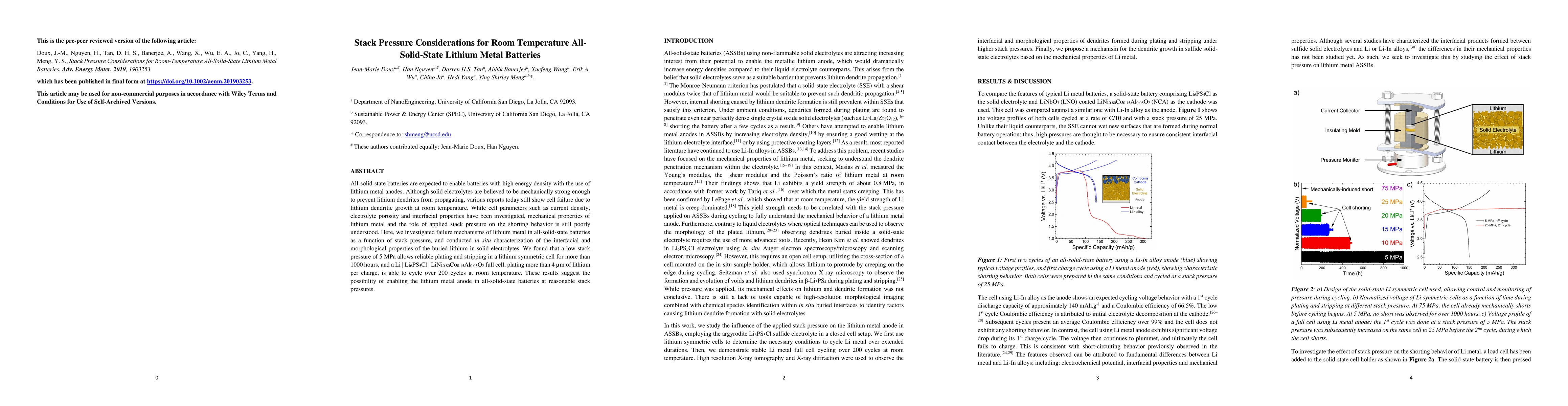 This research investigates the impact of stack pressure on the failure mechanisms of lithium metal in all-solid-state batteries, finding that a low pressure of 5 MPa enables reliable lithium plating and stripping over 1000 hours and supports over 200 cycles in a full cell. These results suggest that moderate stack pressure can facilitate the use of lithium metal anodes in such batteries.