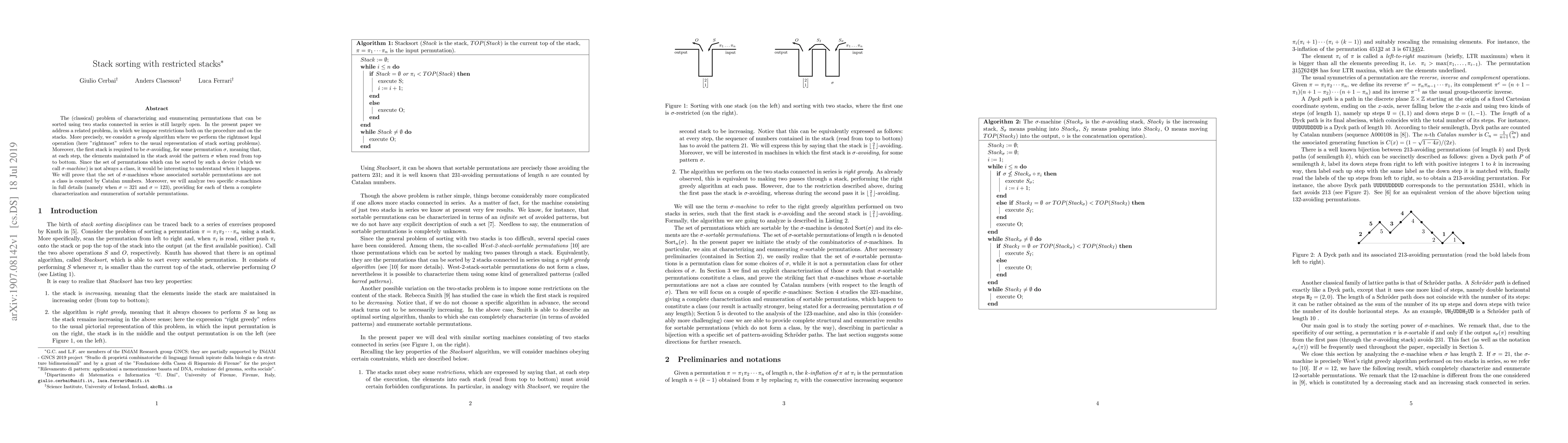 This paper explores permutations that can be sorted using a restricted stack sorting algorithm where the first stack avoids a specific permutation pattern $\sigma$. It proves that the set of such "$\sigma$-machines" whose sortable permutations do not form a class is counted by Catalan numbers, and provides complete characterizations for $\sigma=321$ and $\sigma=123$.