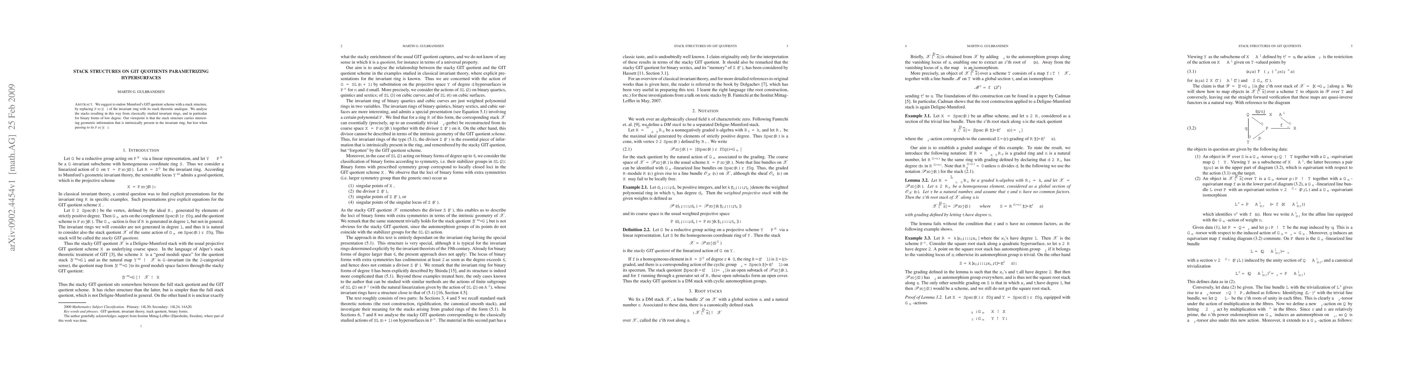 Researchers propose a stack structure for Mumford's GIT quotient scheme, revealing geometric information hidden in invariant rings, particularly for binary forms of low degree.