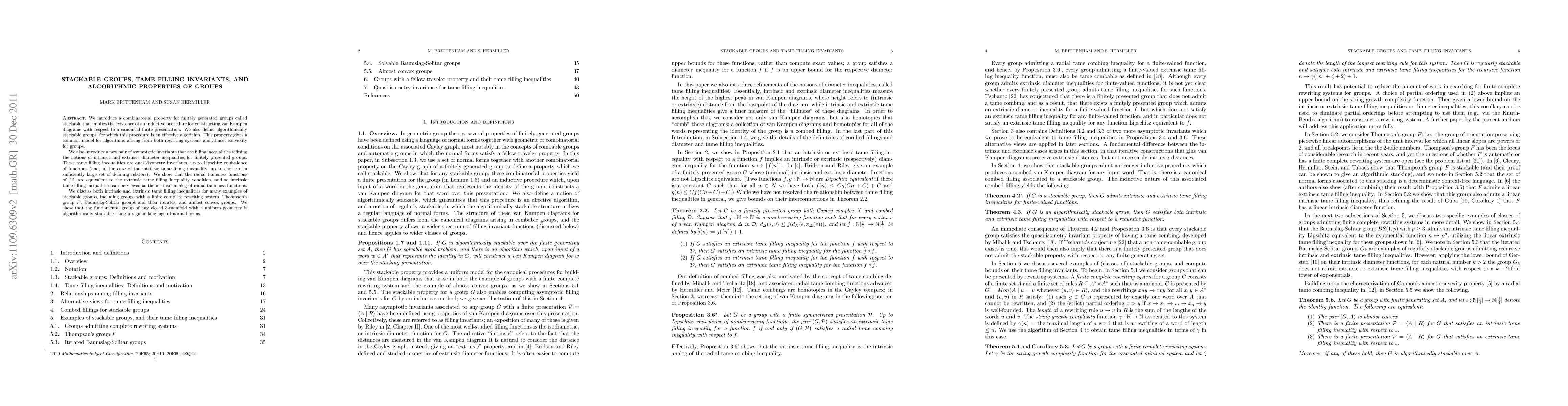 We introduce a combinatorial property for finitely generated groups called stackable that implies the existence of an inductive procedure for constructing van Kampen diagrams with respect to a canonical finite presentation. We also define algorithmically stackable groups, for which this procedure is an effective algorithm. This property gives a common model for algorithms arising from both rewriting systems and almost convexity for groups. We also introduce a new pair of asymptotic invariants that are filling inequalities refining the notions of intrinsic and extrinsic diameter inequalities for finitely presented groups. These tame filling inequalities are quasi-isometry invariants, up to Lipschitz equivalence of functions (and, in the case of the intrinsic tame filling inequality, up to choice of a sufficiently large set of defining relators). We show that radial tameness functions are equivalent to the extrinsic tame filling inequality condition, and so intrinsic tame filling inequalities can be viewed as the intrinsic analog of radial tameness functions. We discuss both intrinsic and extrinsic tame filling inequalities for many examples of stackable groups, including groups with a finite complete rewriting system, Thompson's group F, Baumslag-Solitar groups and their iterates, and almost convex groups. We show that the fundamental group of any closed 3-manifold with a uniform geometry is algorithmically stackable using a regular language of normal forms.
