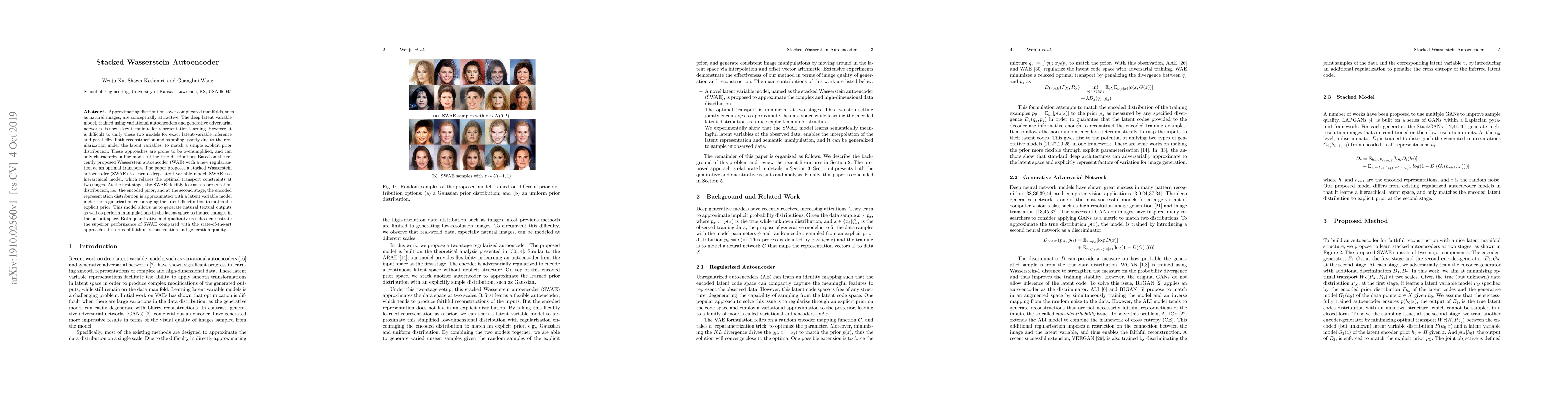 The paper proposes a stacked Wasserstein autoencoder (SWAE) to improve the representation learning of deep latent variable models by hierarchically relaxing optimal transport constraints. The SWAE achieves superior reconstruction and generation quality compared to state-of-the-art methods, enabling natural output generation and latent space manipulations.