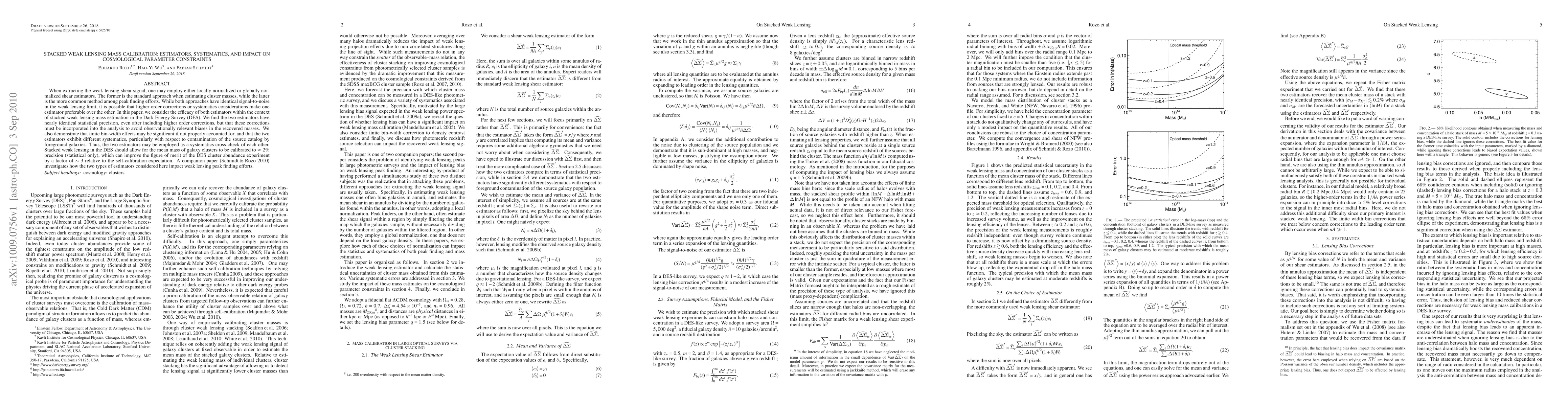 When extracting the weak lensing shear signal, one may employ either locally normalized or globally normalized shear estimators. The former is the standard approach when estimating cluster masses, while the latter is the more common method among peak finding efforts. While both approaches have identical signal-to-noise in the weak lensing limit, it is possible that higher order corrections or systematics considerations make one estimator preferable over the other. In this paper, we consider the efficacy of both estimators within the context of stacked weak lensing mass estimation in the Dark Energy Survey (DES). We find the two estimators have nearly identical statistical precision, even after including higher order corrections, but that these corrections must be incorporated into the analysis to avoid observationally relevant biases in the recovered masses. We also demonstrate that finite bin-width effects may be significant if not properly accounted for, and that the two estimators exhibit different systematics, particularly with respect to contamination of the source catalog by foreground galaxies. Thus, the two estimators may be employed as a systematics cross-check of each other. Stacked weak lensing in the DES should allow for the mean mass of galaxy clusters to be calibrated to about 2% precision (statistical only), which can improve the figure of merit of the DES cluster abundance experiment by a factor of ~3 relative to the self-calibration expectation. A companion paper (Schmidt & Rozo, 2010) investigates how the two types of estimators considered here impact weak lensing peak finding efforts.