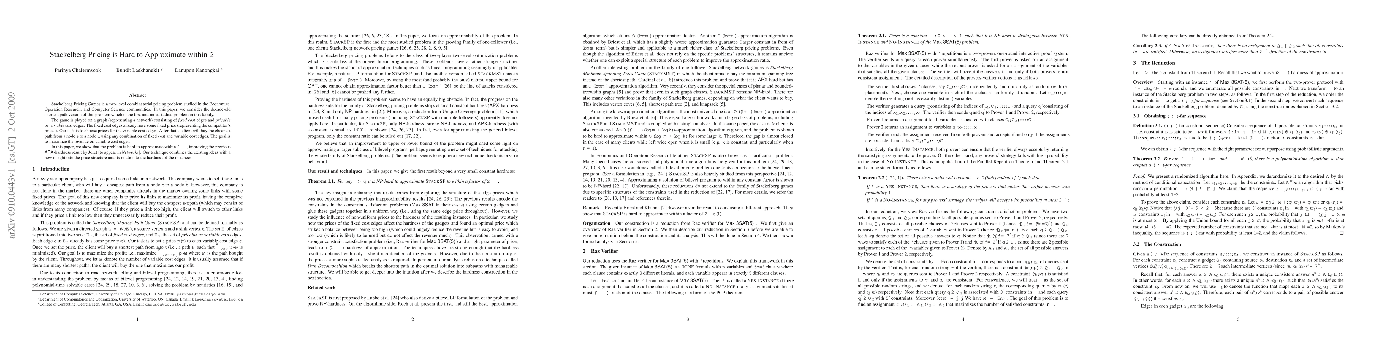 This paper demonstrates that the Stackelberg Pricing Games problem, specifically the shortest path version, is hard to approximate within a factor of $2-\epsilon$. The authors improve upon previous \APX-hardness results and achieve this by combining existing techniques with new insights into the price structure and its relation to the problem's complexity.