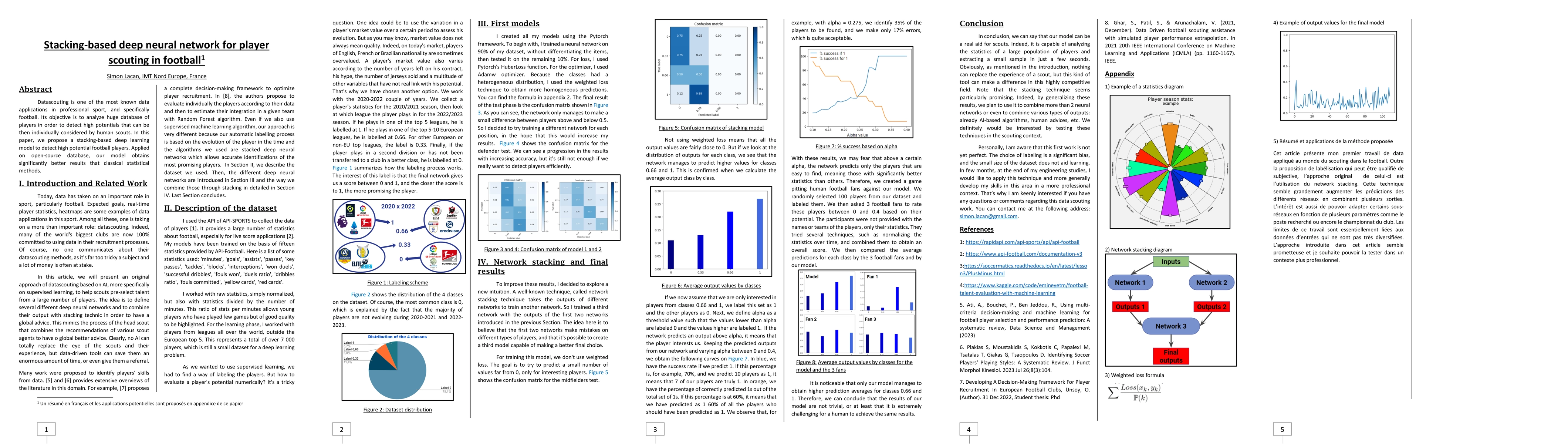 Datascouting is one of the most known data applications in professional sport, and specifically football. Its objective is to analyze huge database of players in order to detect high potentials that can be then individually considered by human scouts. In this paper, we propose a stacking-based deep learning model to detect high potential football players. Applied on open-source database, our model obtains significantly better results that classical statistical methods.