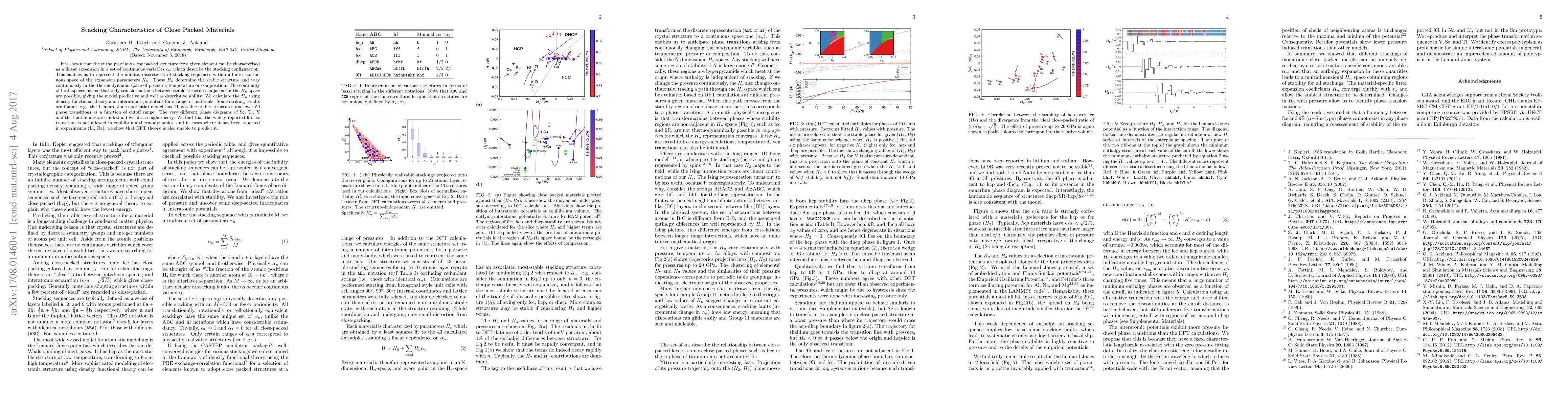 It is shown that the enthalpy of any close packed structure for a given element can be characterised as a linear expansion in a set of continuous variables $\alpha_n$ which describe the stacking configuration. This enables us to represent the infinite, discrete set of stacking sequences within a finite, continuous space of the expansion parameters $H_n$. These $H_n$ determine the stable structure and vary continuously in the thermodynamic space of pressure, temperature or composition. The continuity of both spaces means that only transformations between stable structures adjacent in the $H_n$ space are possible, giving the model predictive and well as descriptive ability. We calculate the $H_n$ using density functional theory and interatomic potentials for a range of materials. Some striking results are found: e.g. the Lennard-Jones potential model has 11 possible stable structures and over 50 phase transitions as a function of cutoff range. The very different phase diagrams of Sc, Tl, Y and the lanthanides are understood within a single theory. We find that the widely-reported 9R-fcc transition is not allowed in equilibrium thermodynamics, and in cases where it has been reported in experiments (Li, Na), we show that DFT theory is also unable to predict it.