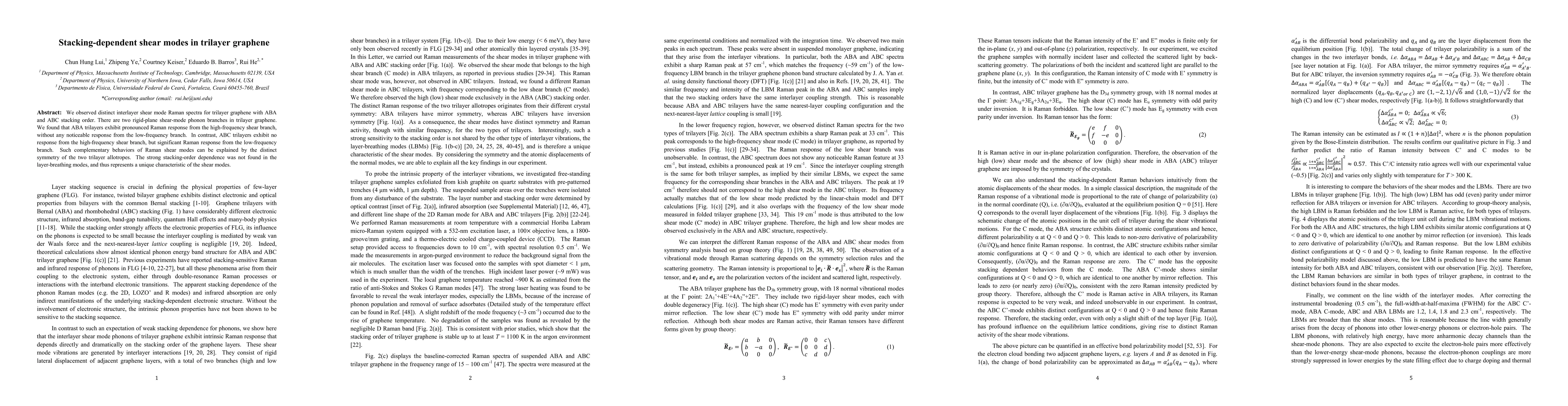 Research reveals unique Raman spectra for trilayer graphene's ABA and ABC stacking orders, showing distinct shear-mode phonon responses. ABA stacking exhibits a strong high-frequency shear mode Raman response, while ABC stacking shows the opposite behavior, highlighting the stacking order's significant influence on shear modes.