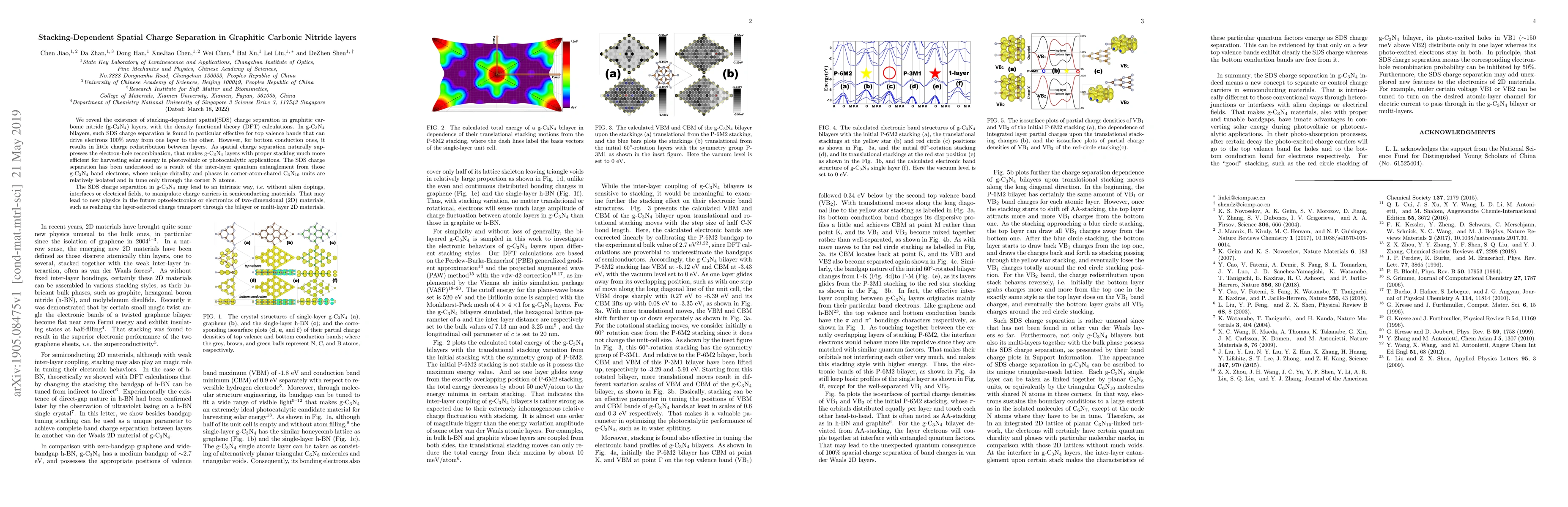 This paper reveals stacking-dependent spatial charge separation in graphitic carbonic nitride (g-C3N4) layers, enhancing photovoltaic or photocatalytic efficiency by suppressing electron-hole recombination. The separation is driven by inter-layer quantum entanglement and unique chirality in corner-atom-shared C6N10 units, potentially enabling intrinsic charge carrier manipulation in 2D materials.