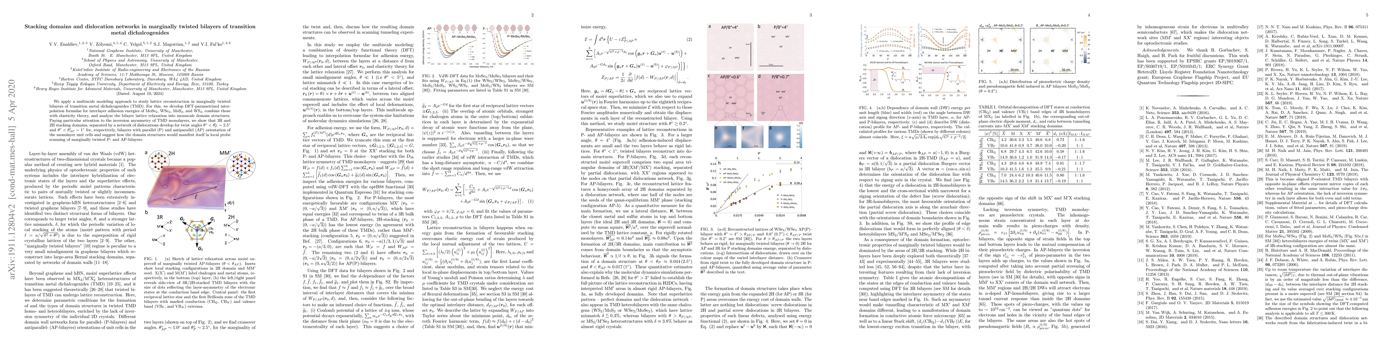 This paper uses multiscale modeling to investigate lattice reconstruction in marginally twisted bilayers of transition metal dichalcogenides, revealing the formation of 3R and 2H stacking domains separated by dislocation networks for twist angles below 2.5° and 1°, respectively, depending on the orientation of monolayer unit cells. The study suggests how these domain structures can be detected via local probe scanning techniques.