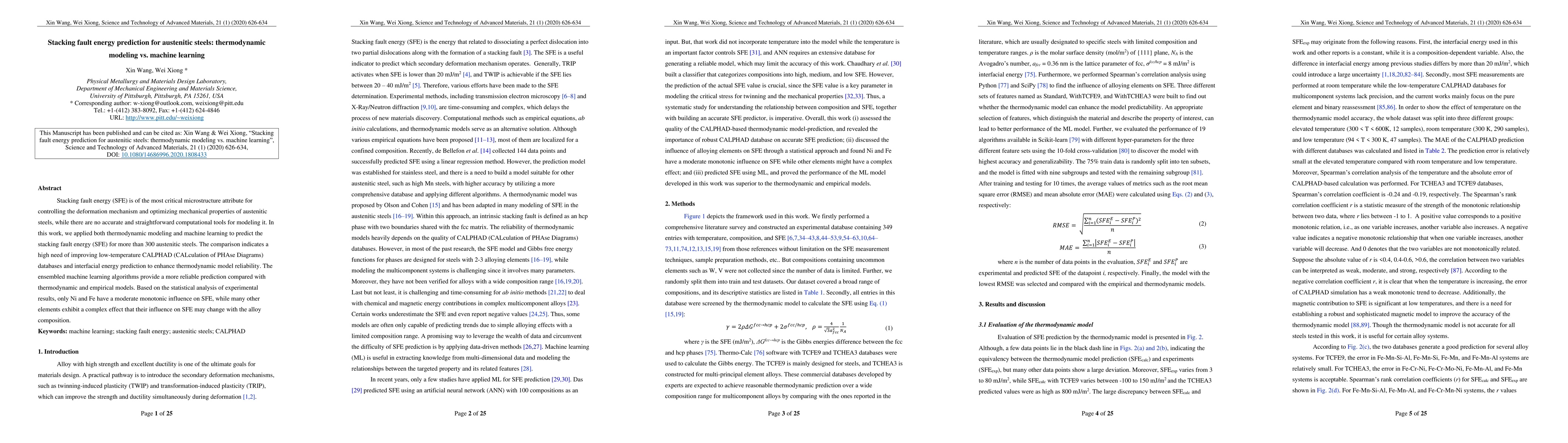 This research compares thermodynamic modeling and machine learning for predicting stacking fault energy (SFE) in austenitic steels, finding that machine learning offers more reliable predictions. The study highlights the need for improved low-temperature CALPHAD databases and suggests that only Ni and Fe have a straightforward influence on SFE, while other elements have complex, composition-dependent effects.