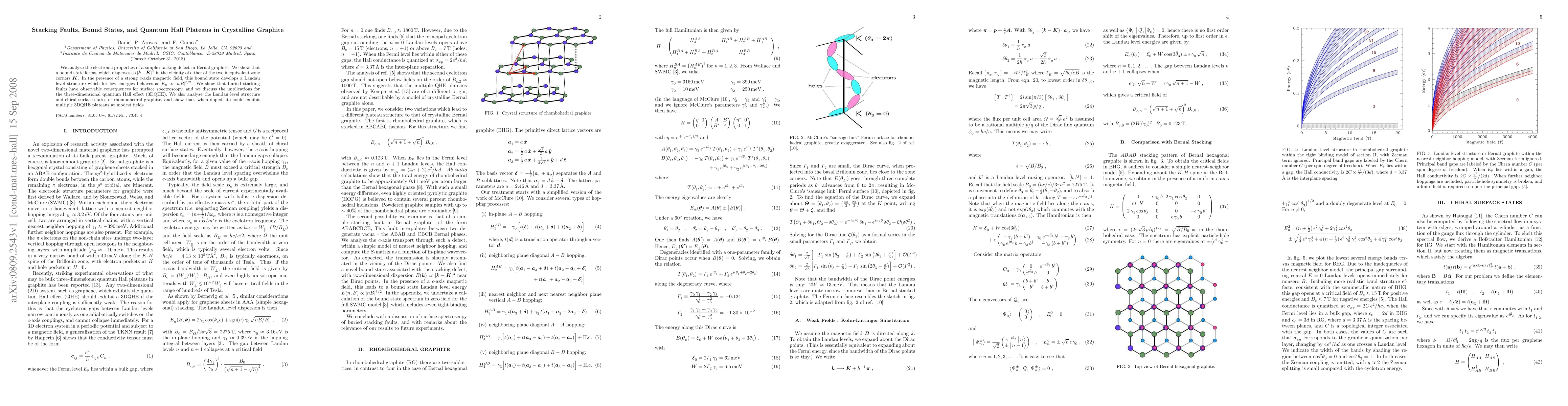 This paper investigates the electronic properties of stacking faults in crystalline graphite, revealing the formation of a bound state that influences quantum Hall plateaus. The study also explores the impact of these defects on surface spectroscopy and predicts multiple quantum Hall plateaus in doped rhombohedral graphite under modest magnetic fields.