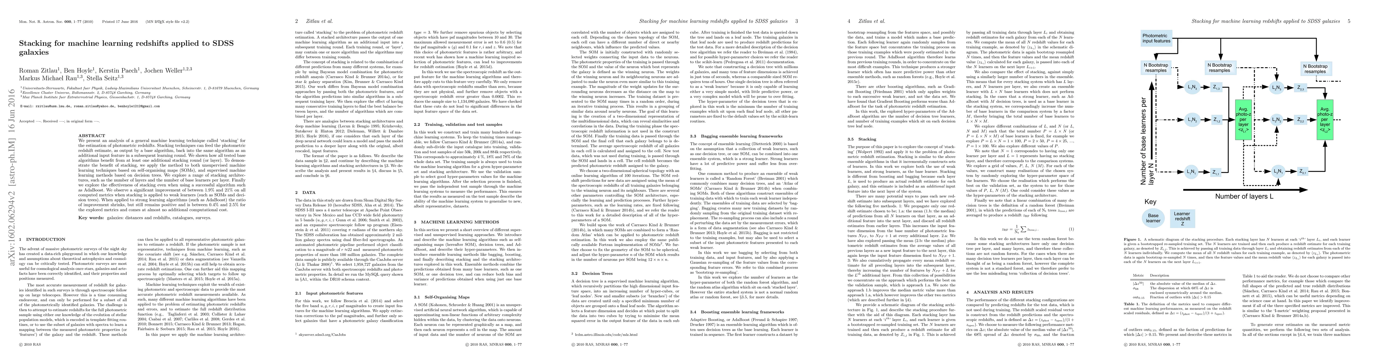 This paper investigates the stacking technique for improving photometric redshift estimates in machine learning, showing significant enhancements across various base algorithms, including self-organising maps and decision trees, with improvements ranging from 1.9% to 21%. Even for strong learners like AdaBoost, stacking yields a modest yet positive improvement of 0.4% to 2.5%.