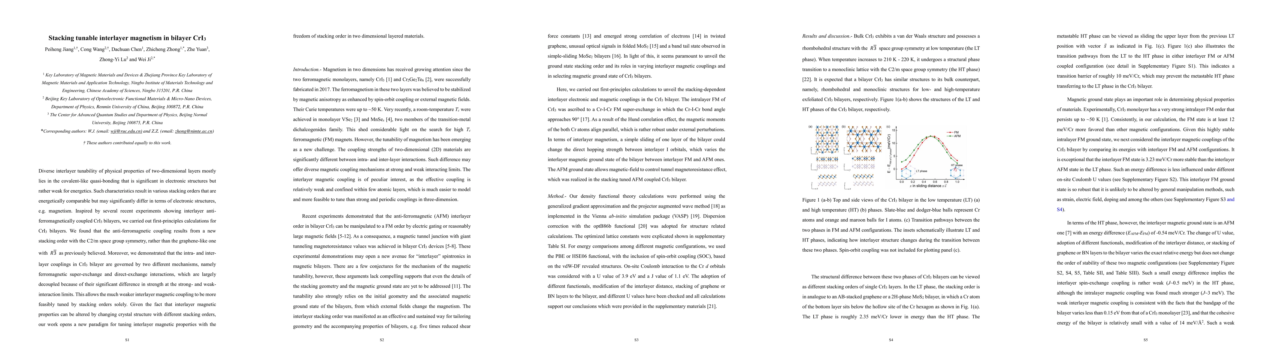 This paper investigates the tunable interlayer magnetism in bilayer CrI3, revealing that anti-ferromagnetic coupling arises from a new C2/m stacking order rather than the previously believed R3 order. The study demonstrates distinct intra- and inter-layer coupling mechanisms, allowing for feasible tuning of interlayer magnetic properties through stacking order changes.