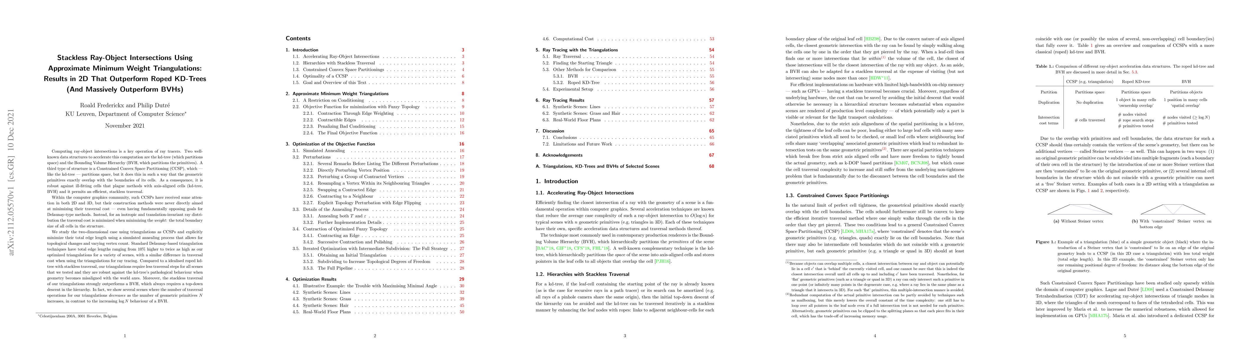This paper proposes an optimized stackless ray-object intersection method using approximate minimum weight triangulations in 2D, which outperforms both roped kd-trees and Bounding Volume Hierarchies (BVHs). The method minimizes traversal cost by reducing the total edge length of the triangulations, achieving significantly fewer traversal steps compared to traditional structures.