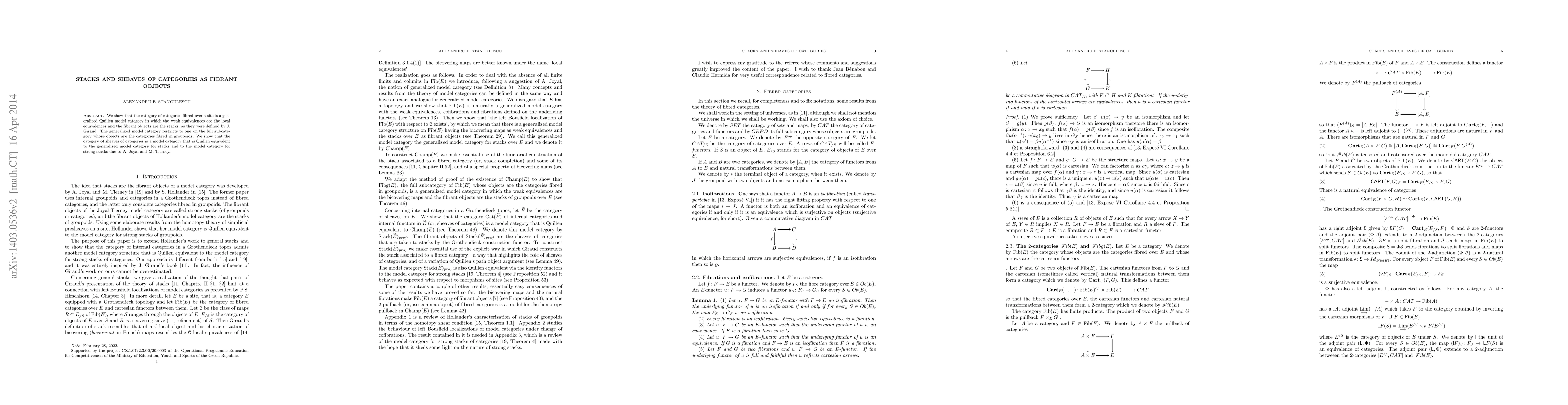 We show that the category of categories fibred over a site is a generalized Quillen model category in which the weak equivalences are the local equivalences and the fibrant objects are the stacks, as they were defined by J. Giraud. The generalized model category restricts to one on the full subcategory whose objects are the categories fibred in groupoids. We show that the category of sheaves of categories is a model category that is Quillen equivalent to the generalized model category for stacks and to the model category for strong stacks due to A. Joyal and M. Tierney.