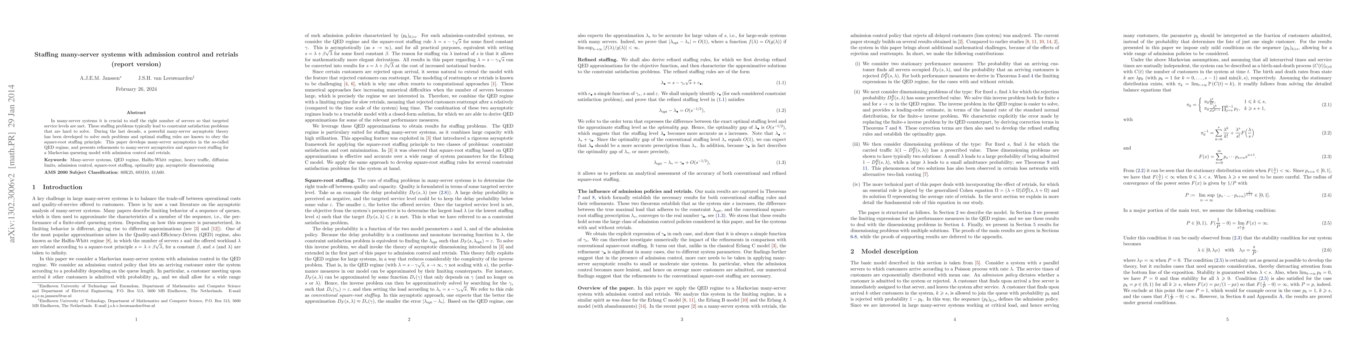 This paper refines many-server asymptotics and the square-root staffing principle for a Markovian queueing model with admission control and retrials, extending the QED regime to improve staffing strategies for meeting service level targets.