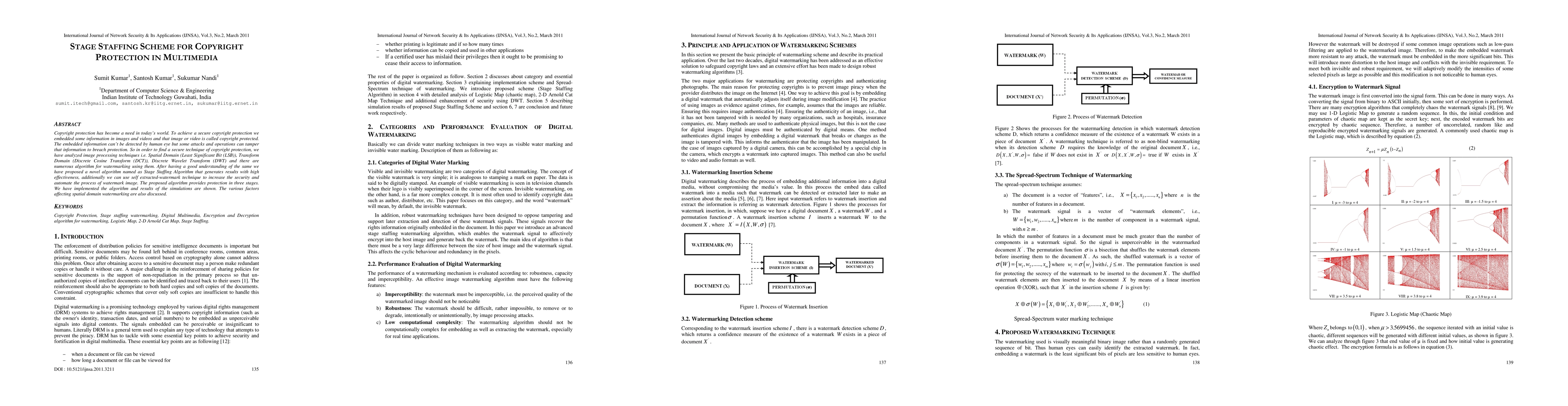 This paper proposes a novel Stage Staffing Algorithm for secure copyright protection in multimedia by embedding watermarks in images and videos using techniques like LSB, DCT, and DWT. The proposed algorithm enhances security through a self-extracted-watermark technique and is shown to be effective through simulation results.