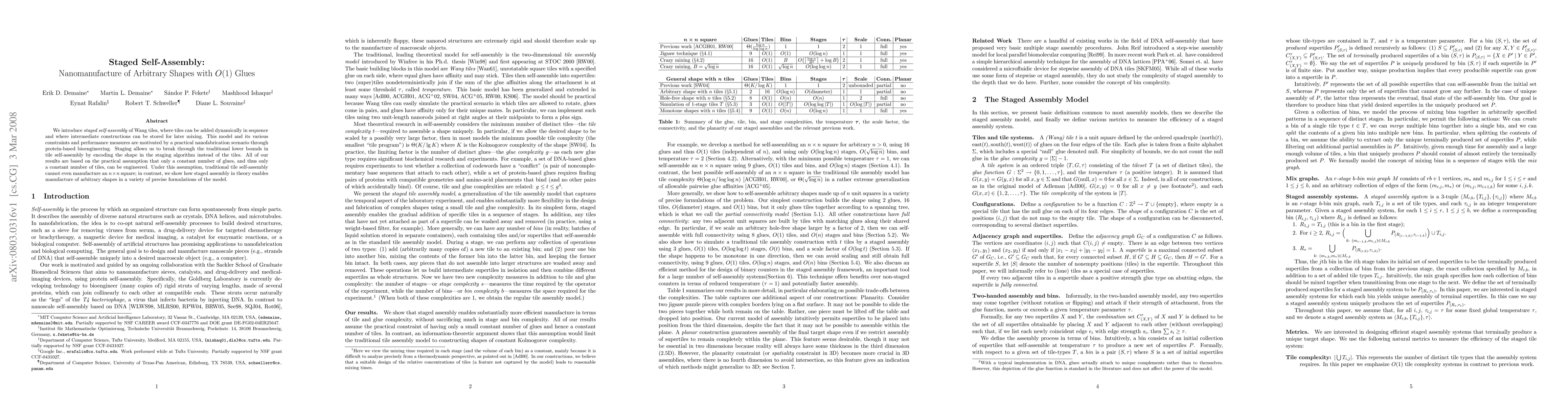 This approach, called staged self-assembly, allows for the creation of complex shapes with only O(1) glues, enabling applications in nanofabrication and bioengineering.