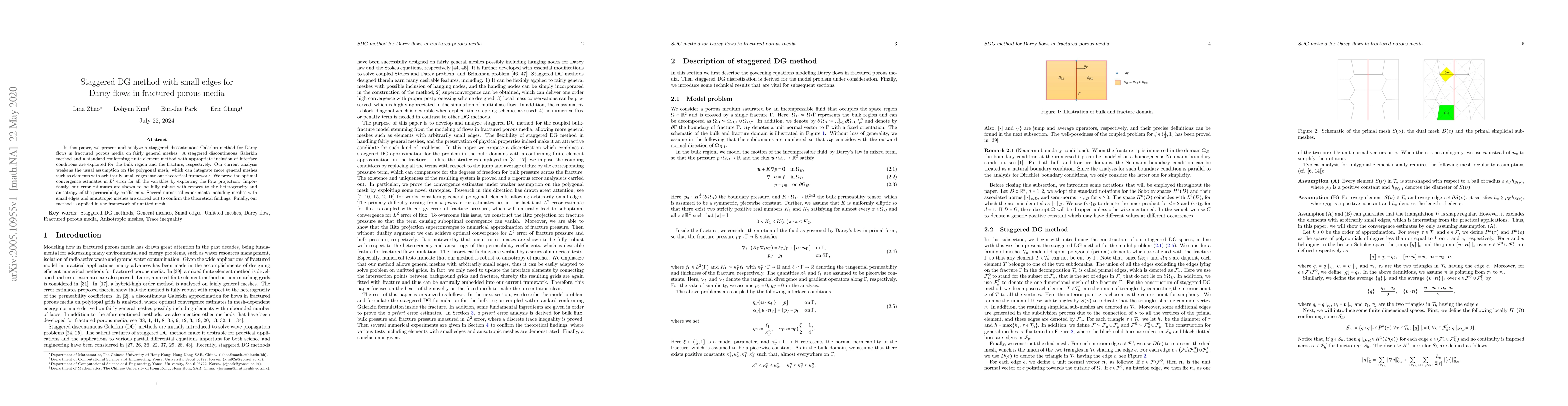 This paper introduces a staggered discontinuous Galerkin method for Darcy flows in fractured porous media, allowing for general meshes including those with small edges. The method demonstrates optimal convergence and robustness against permeability heterogeneity, validated through numerical experiments.
