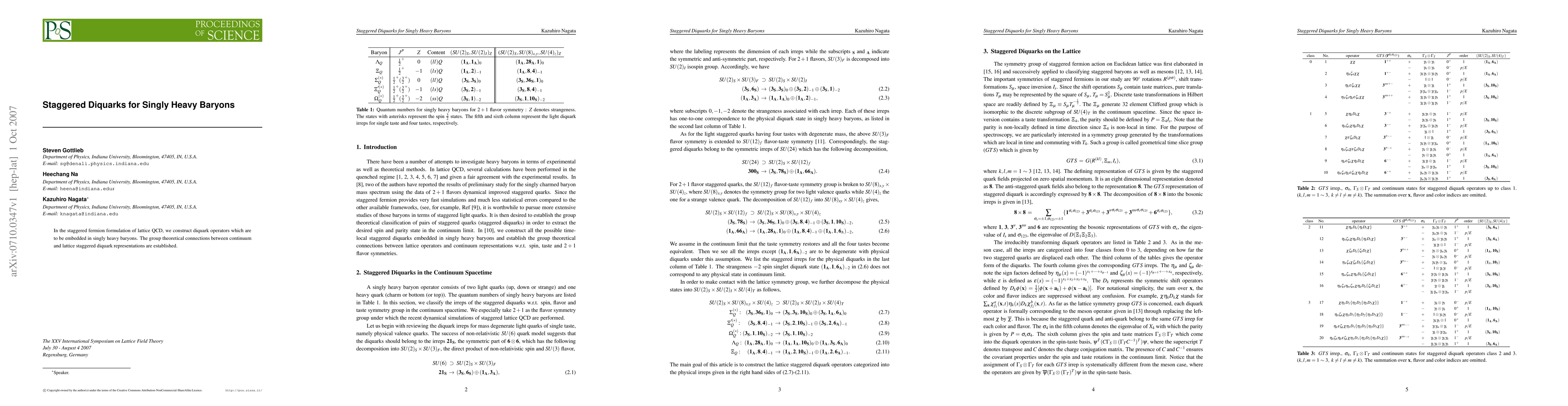 Summary: This paper constructs staggered diquark operators in lattice QCD to study singly heavy baryons, establishing group theoretical connections between their continuum and lattice representations. The work provides a framework for understanding the structure of these baryons in lattice formulations.