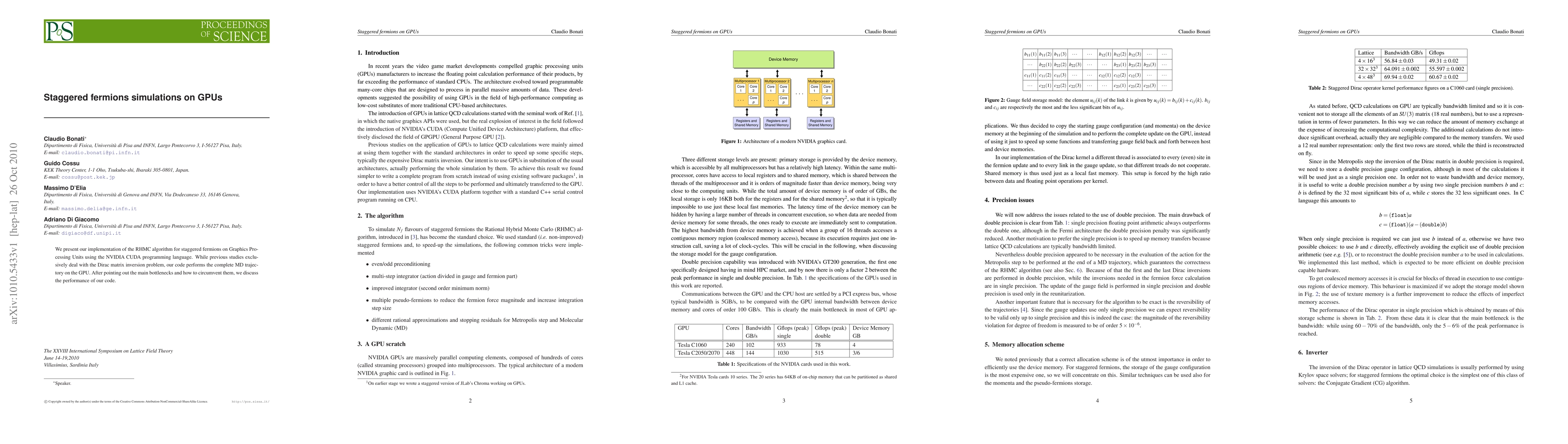 The paper details an implementation of the RHMC algorithm for staggered fermions on GPUs using CUDA, addressing and circumventing main bottlenecks. Performance of the code is discussed, marking a shift from prior studies focusing solely on Dirac matrix inversion.