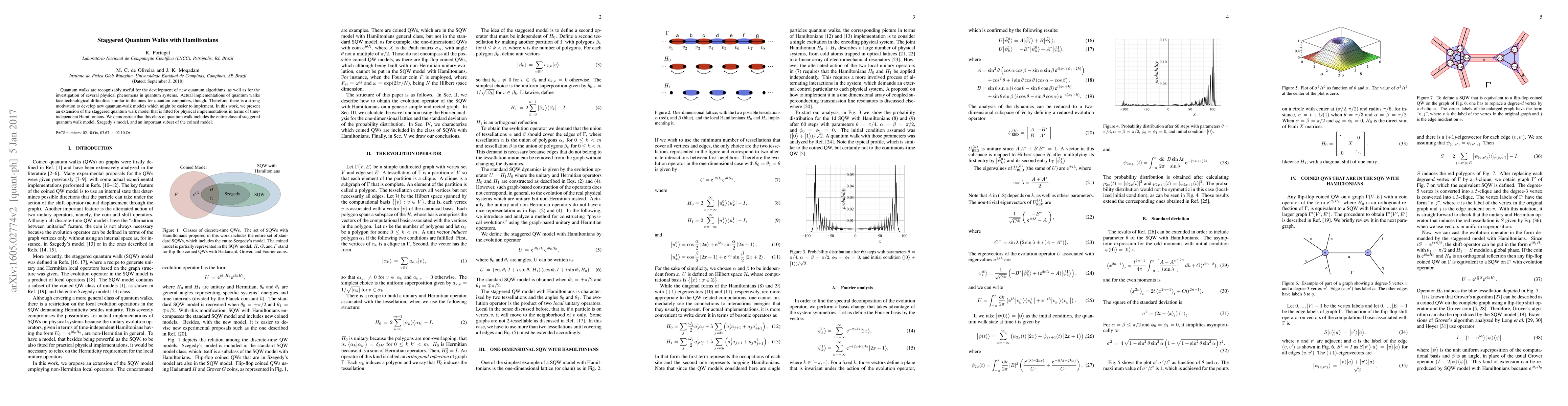 This paper introduces an extended staggered quantum walk model using time-independent Hamiltonians, aiming for easier physical implementation. It shows that this model encompasses the entire staggered quantum walk, Szegedy's model, and a significant subset of the coined model.