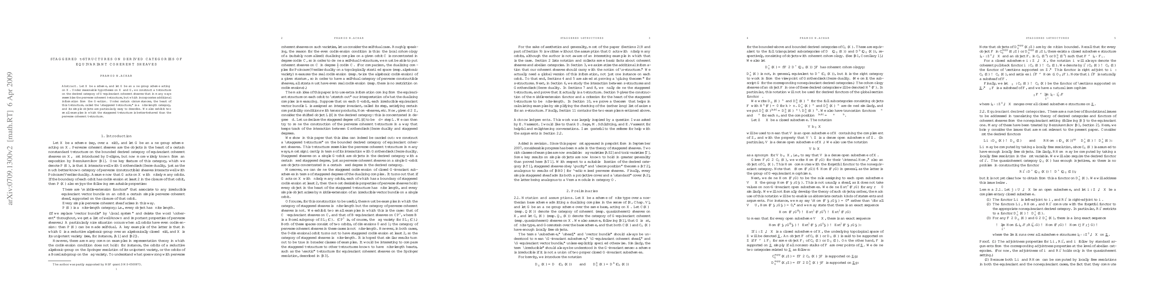 This paper constructs a "staggered t-structure" on the derived category of G-equivariant coherent sheaves for a scheme X acted on by an affine group scheme G, resembling the perverse coherent t-structure but incorporating G-action details. The staggered t-structure has an artinian heart and simpler object descriptions under certain conditions, with examples showing its better behavior.