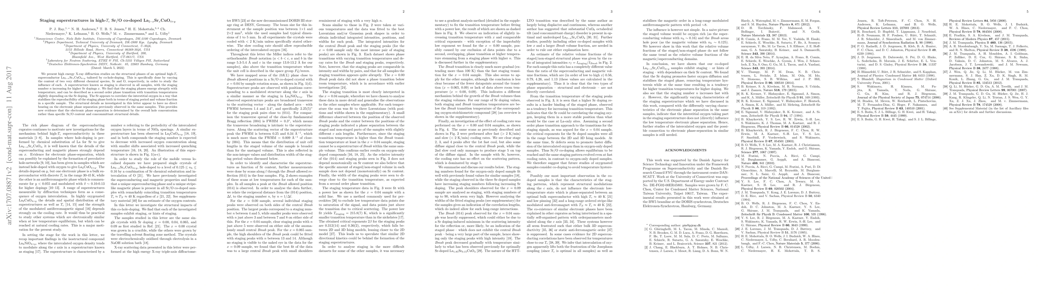 We present high energy X-ray diffraction studies on the structural phases of an optimal high-$T_c$ superconductor La$_{2-x}$Sr$_x$CuO$_{4+y}$ tailored by co-hole-doping. This is specifically done by varying the content of two very different chemical species, Sr and O, respectively, in order to study the influence of each. A superstructure known as staging is observed in all samples, with the staging number $n$ increasing for higher Sr dopings $x$. We find that the staging phases emerge abruptly with temperature, and can be described as a second order phase transition with transition temperatures slightly depending on the Sr doping. The Sr appears to correlate the interstitial oxygen in a way that stabilises the reproducibility of the staging phase both in terms of staging period and volume fraction in a specific sample. The structural details as investigated in this letter appear to have no direct bearing on the electronic phase separation previously observed in the same samples. This provides new evidence that the electronic phase separation is determined by the overall hole concentration rather than specific Sr/O content and concommittant structural details.