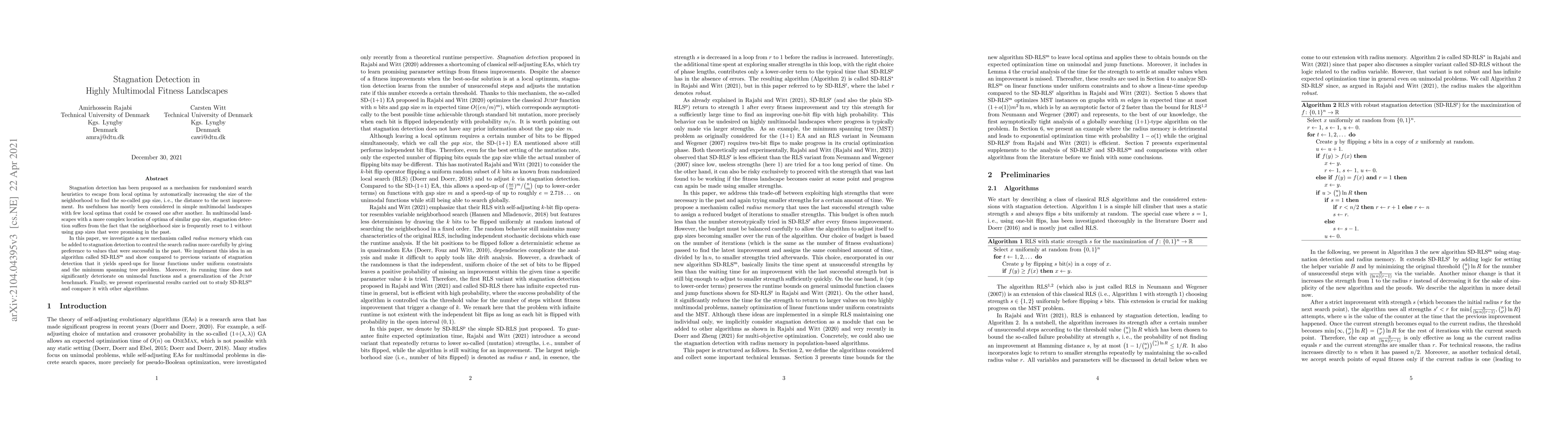 Researchers developed a new stagnation detection mechanism called radius memory to improve performance in complex multimodal landscapes, achieving speed-ups on specific problems like linear functions and the minimum spanning tree problem.