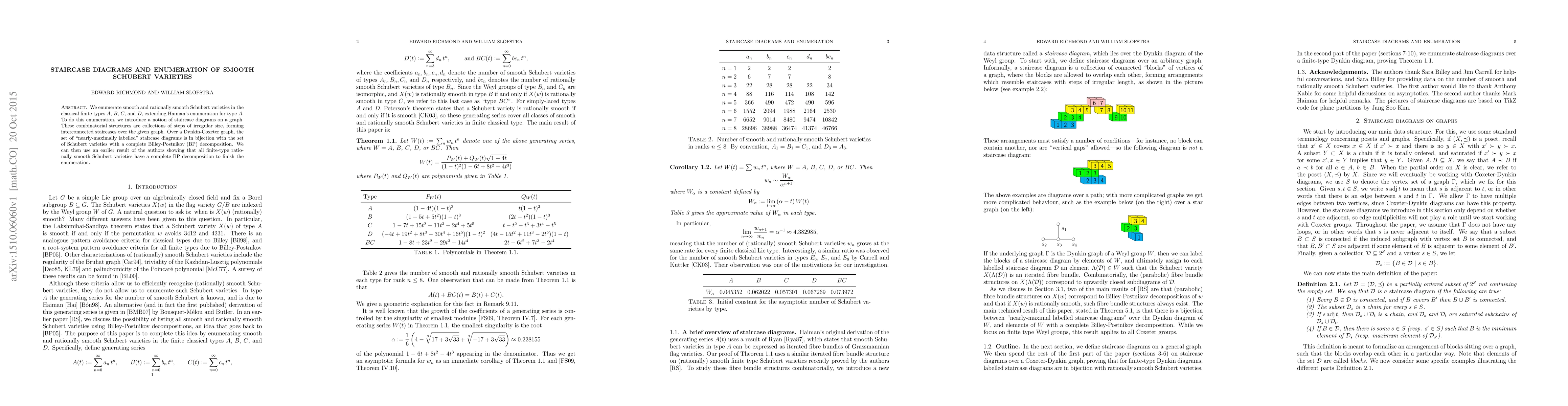 We enumerate smooth and rationally smooth Schubert varieties in the classical finite types A, B, C, and D, extending Haiman's enumeration for type A. To do this enumeration, we introduce a notion of staircase diagrams on a graph. These combinatorial structures are collections of steps of irregular size, forming interconnected staircases over the given graph. Over a Dynkin-Coxeter graph, the set of "nearly-maximally labelled" staircase diagrams is in bijection with the set of Schubert varieties with a complete Billey-Postnikov (BP) decomposition. We can then use an earlier result of the authors showing that all finite-type rationally smooth Schubert varieties have a complete BP decomposition to finish the enumeration.