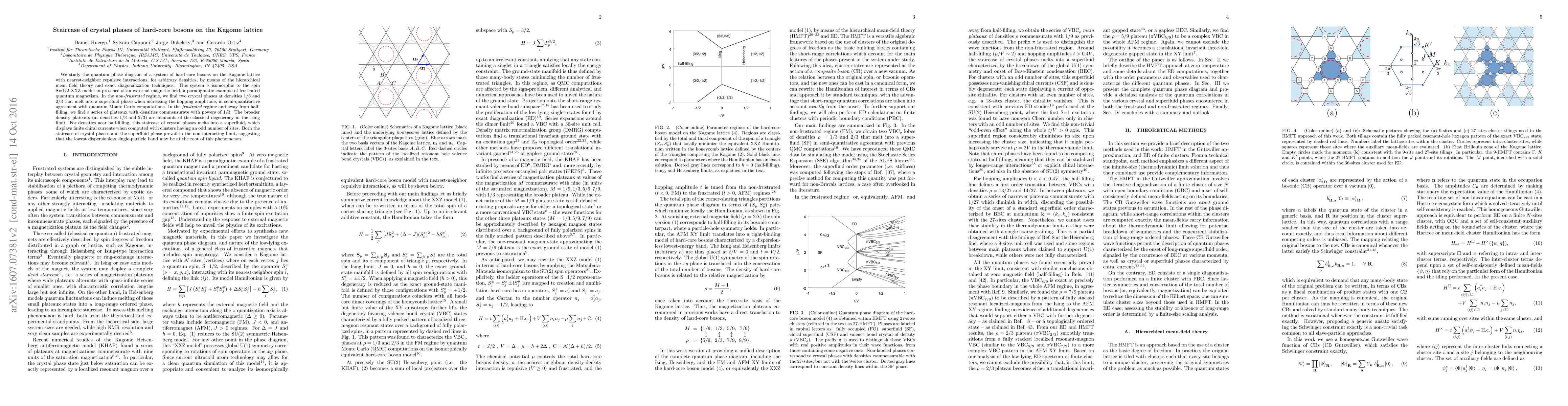 Researchers discovered a complex phase diagram for hard-core bosons on the Kagome lattice, featuring crystal phases and a superfluid state, with implications for frustrated quantum magnetism.