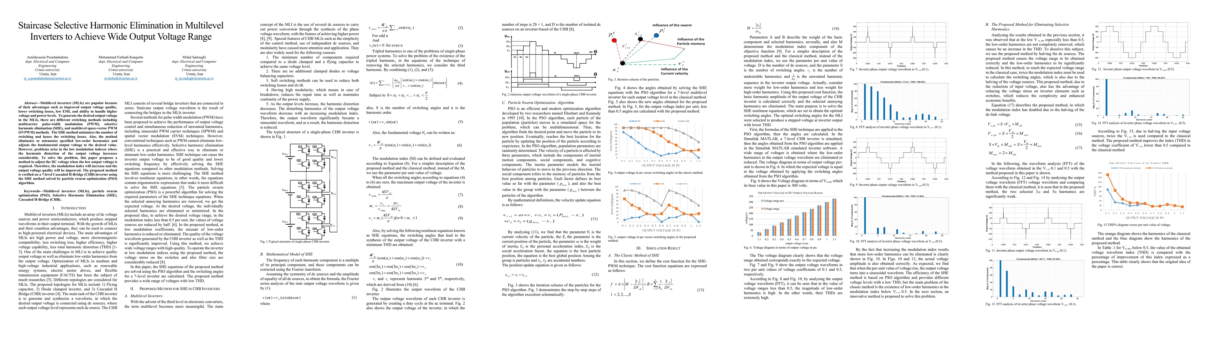 This paper proposes a staircase selective harmonic elimination method for multilevel inverters to enhance output voltage quality across a wide range by adjusting the DC voltage, thereby improving harmonic performance at low modulation indexes. The method is validated on a 7-level CHB inverter using PSO for optimization.