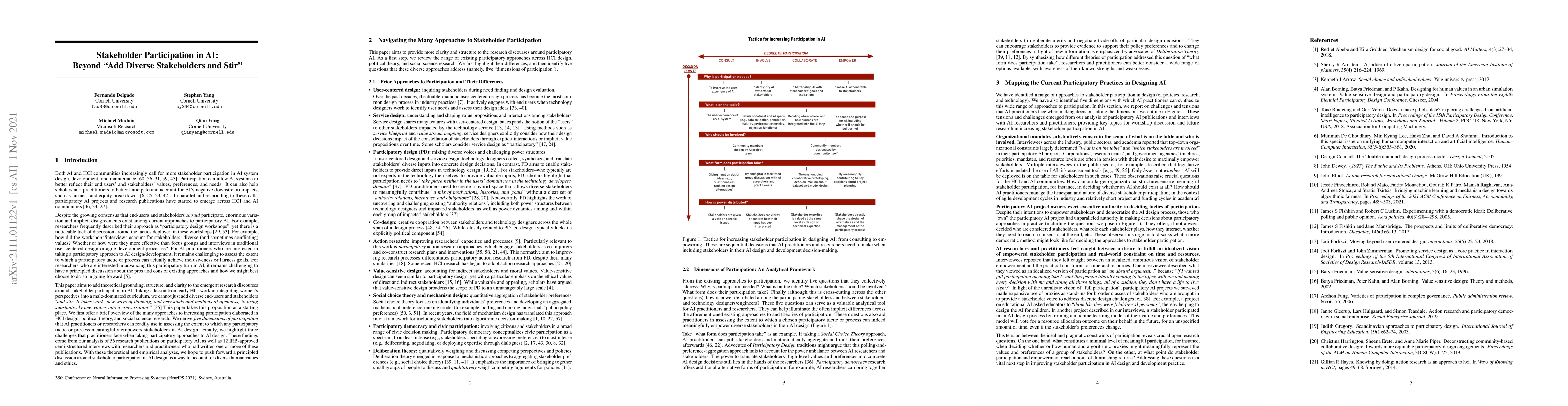 A new framework for participatory approaches to AI design has been established through a literature synthesis and empirical analysis of current practices among AI researchers and practitioners. This framework can help guide future discussions on how stakeholders should participate in AI development.