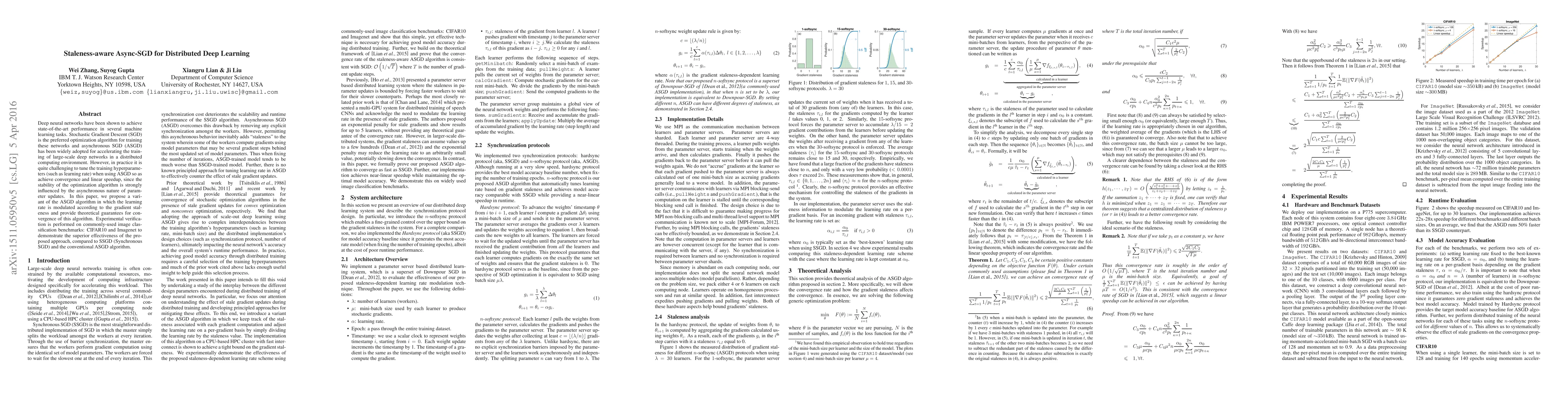 This paper proposes a staleness-aware asynchronous SGD (ASGD) variant that adjusts the learning rate based on gradient staleness, providing theoretical convergence guarantees. Experimental results on CIFAR10 and ImageNet show its superior performance over synchronous and conventional asynchronous SGD.
