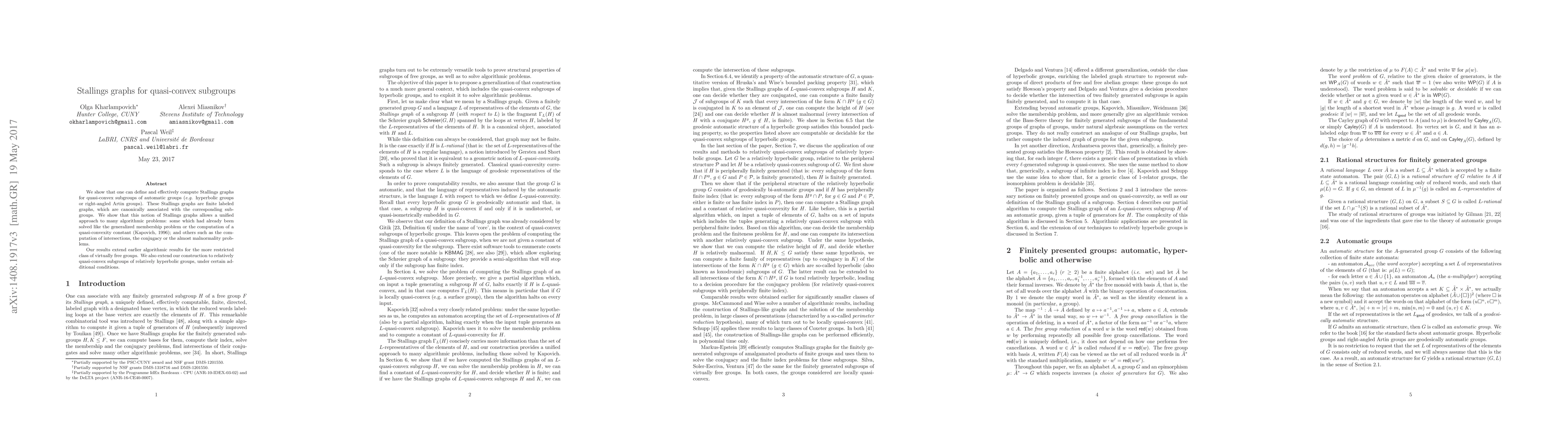 This paper defines and computes Stallings graphs for quasi-convex subgroups of automatic groups, providing a unified approach to various algorithmic problems such as membership, intersection, conjugacy, and almost malnormality problems. The results extend beyond virtually free groups to quasi-convex subgroups in hyperbolic and right-angled Artin groups.