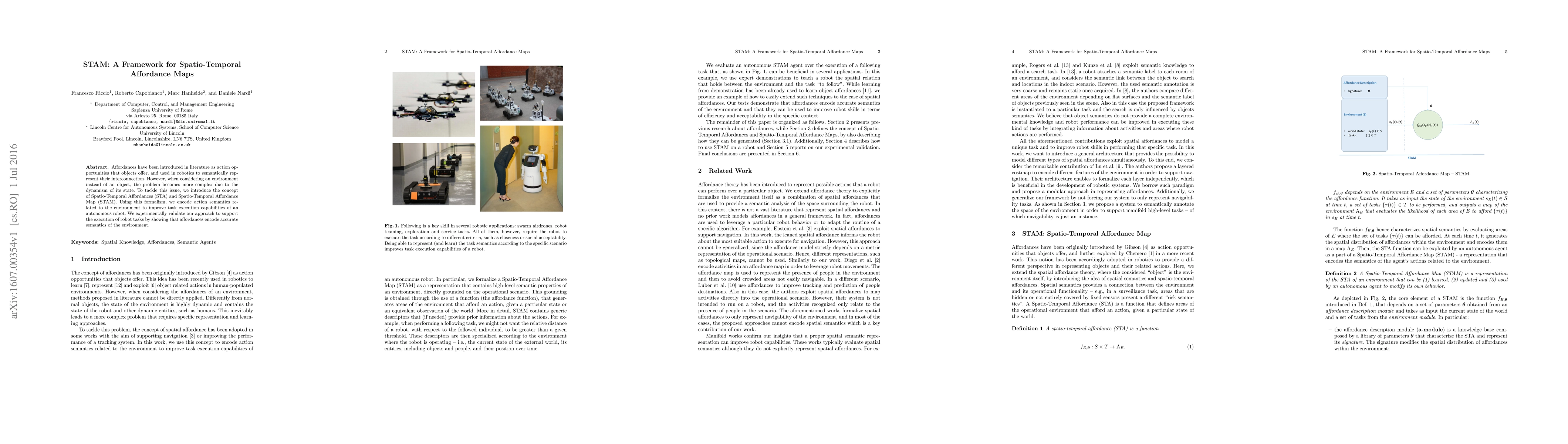 Affordances have been introduced in literature as action opportunities that objects offer, and used in robotics to semantically represent their interconnection. However, when considering an environment instead of an object, the problem becomes more complex due to the dynamism of its state. To tackle this issue, we introduce the concept of Spatio-Temporal Affordances (STA) and Spatio-Temporal Affordance Map (STAM). Using this formalism, we encode action semantics related to the environment to improve task execution capabilities of an autonomous robot. We experimentally validate our approach to support the execution of robot tasks by showing that affordances encode accurate semantics of the environment.