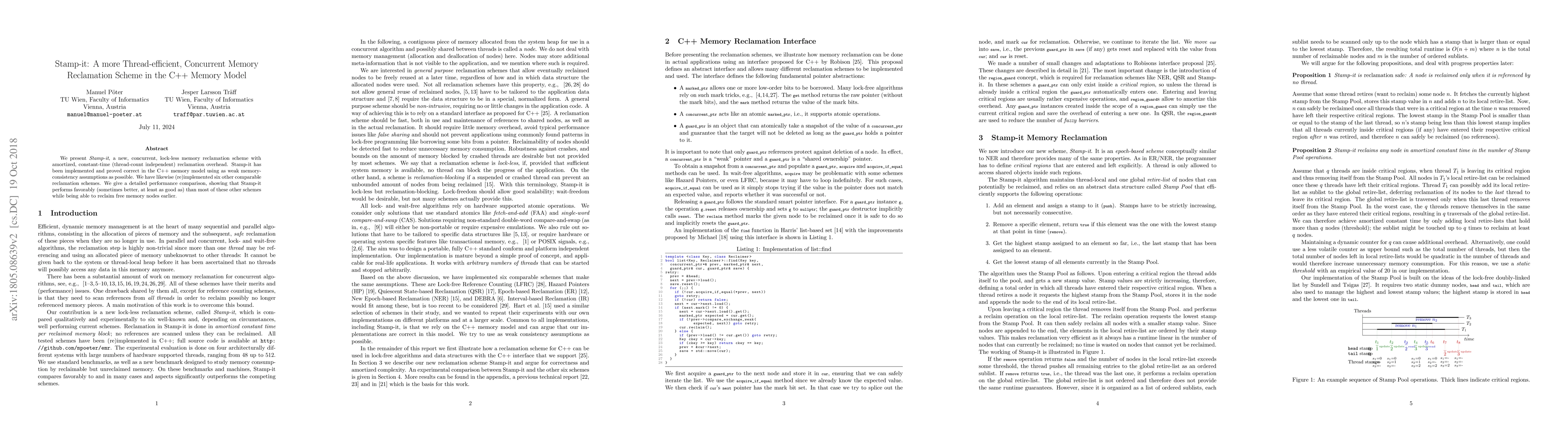 Stamp-it is a novel, lock-less memory reclamation scheme that offers amortized, constant-time overhead in concurrent environments. It performs competitively or better than other schemes while reclaiming memory nodes earlier, all within the C++ memory model with minimal memory-consistency assumptions.