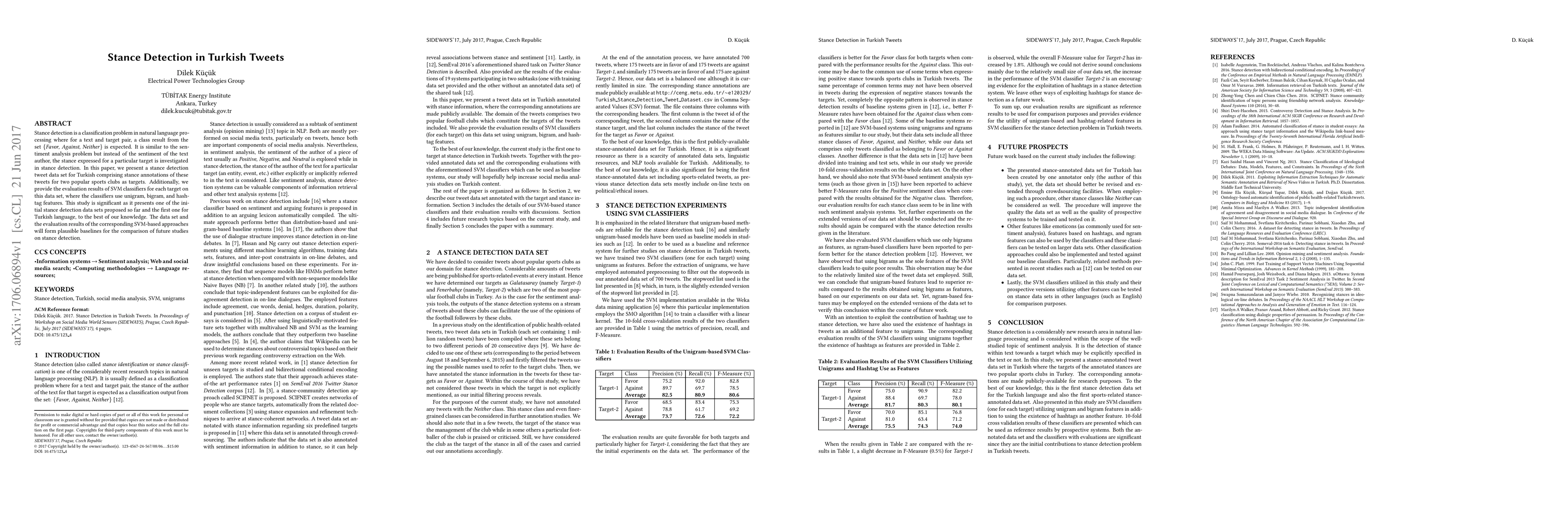 This paper introduces a novel stance detection dataset for Turkish tweets, focusing on the stances expressed towards two popular sports clubs. It evaluates SVM classifiers using unigram, bigram, and hashtag features, presenting the first Turkish language stance detection dataset and baselines for future research.